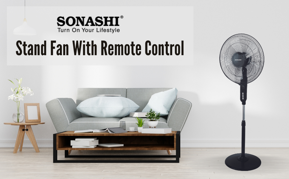 Key Features: SONASHI SF-8027SR Stand Fan – [Black] 16 in. Floor Fan with Remote Control, 3 Speed Switch, Auto Wind Flow Function, 5 Transparent Blade Leaf | Electronic Appliance for Home, Workplace. Electrical Tower Fan: This well-engineered pedestal fan by Sonashi offers allows you to enjoy a comfortable and cool ambience both at your home or workplace. The sleek and elegant design makes it an ideal addition to your study area, lobby, hallway, bedroom and dining area. Intriguing Design: The Sonashi standing fan embraces a 5-transparent blade leaf that offers maximum airflow. It can be adjusted to different heights as desired to ensure equal and maximum flow of air in a living space. Great Functionality: This 5-blade stand fan comes with a 3-speed switch and oscillation function to adjust the fan speed accordingly. You can adjust the speed comfortably with the help of included remote control. It also embraces a Korea guard ring that holds the mesh in place and adds to its durability and reliable performance. Excellent Performance: You can set this 3-speed pedestal fan to a 7.5 hours timer using the auto wind flow function to enjoy a comfortable night time. It also features a self-protection system that protects its functionality when overheated. Product Specification: The Sonashi stand fan with remote control measures 16 in. in height and comes in a sleek black colour. It works efficiently and produces a low noise as it operates on an in-built 60W copper motor.