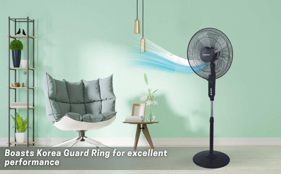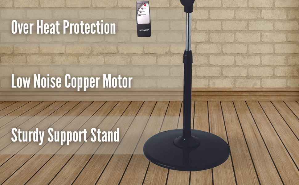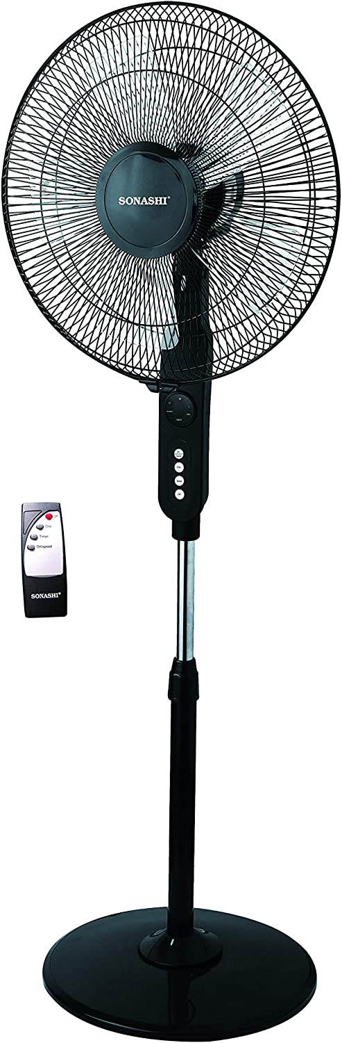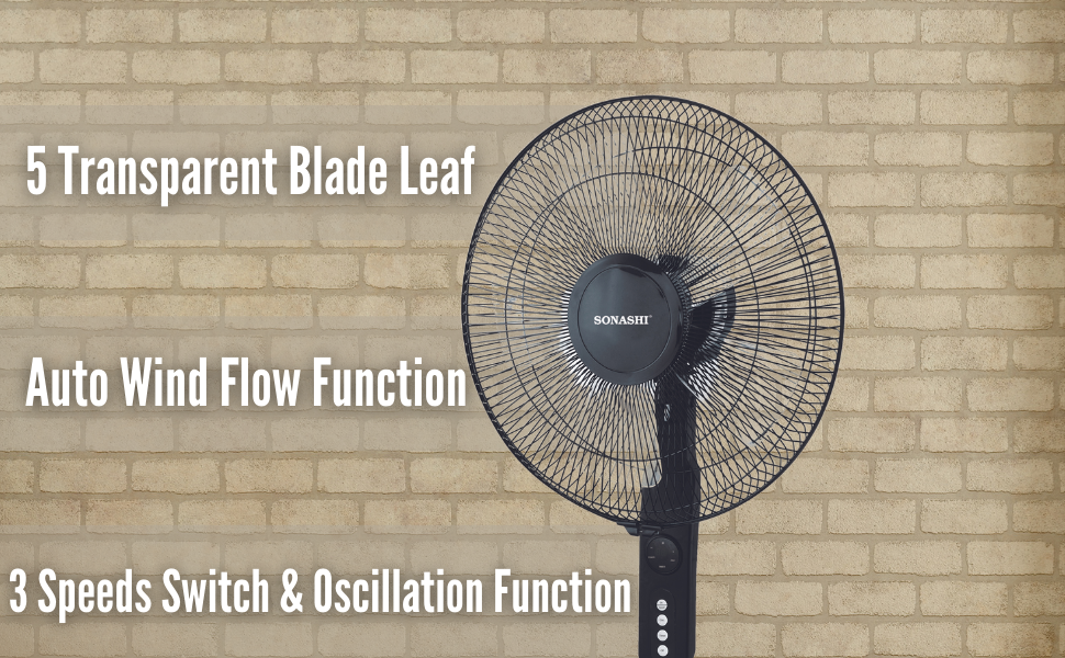 SONASHI SF-8027SR Stand Fan – [Black] 16 in. Floor Fan with Remote Control, 3 Speed Switch, Auto Wind Flow Function, 5 Transparent Blade Leaf | Electronic Appliance for Home, Workplace.