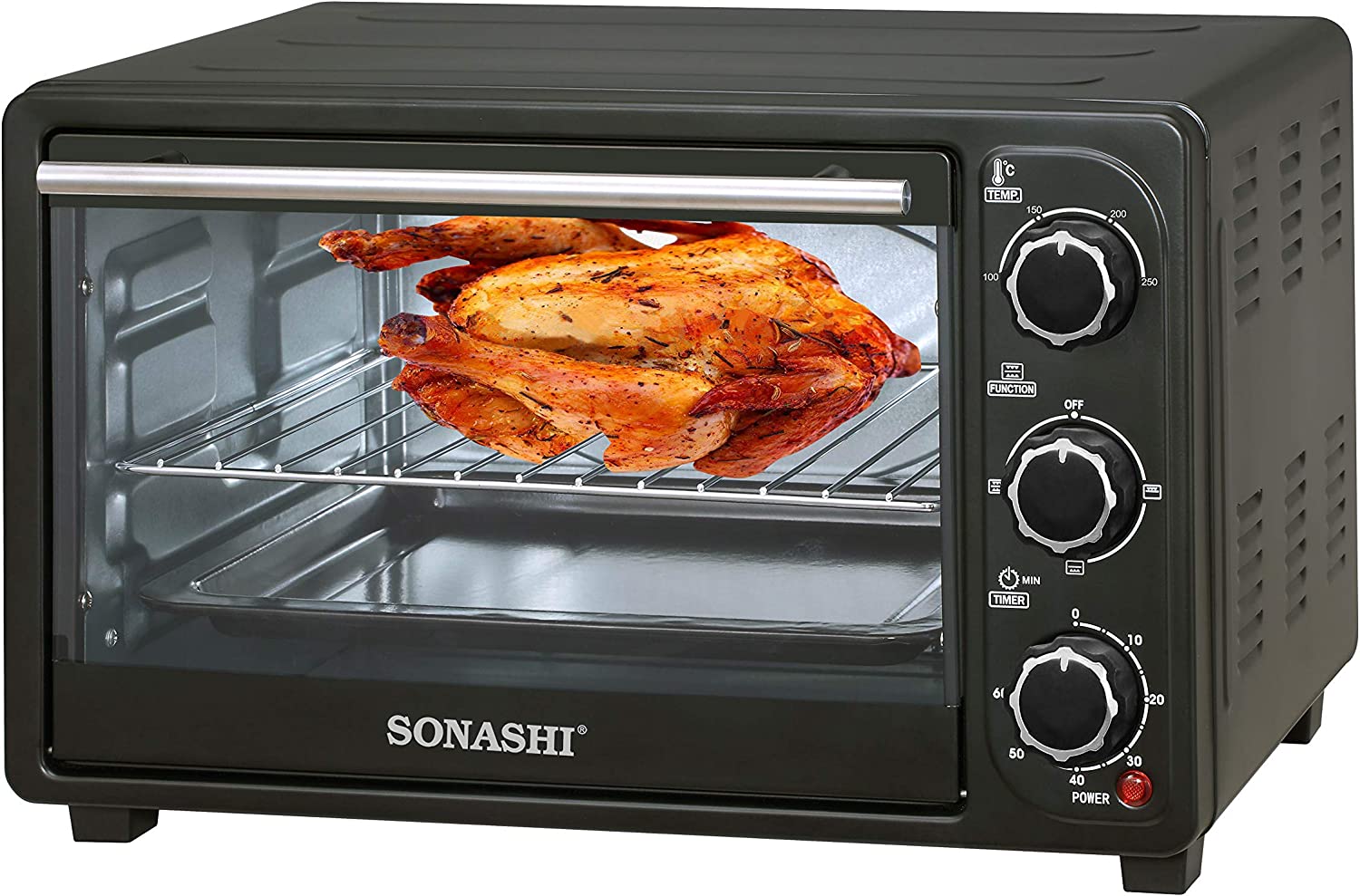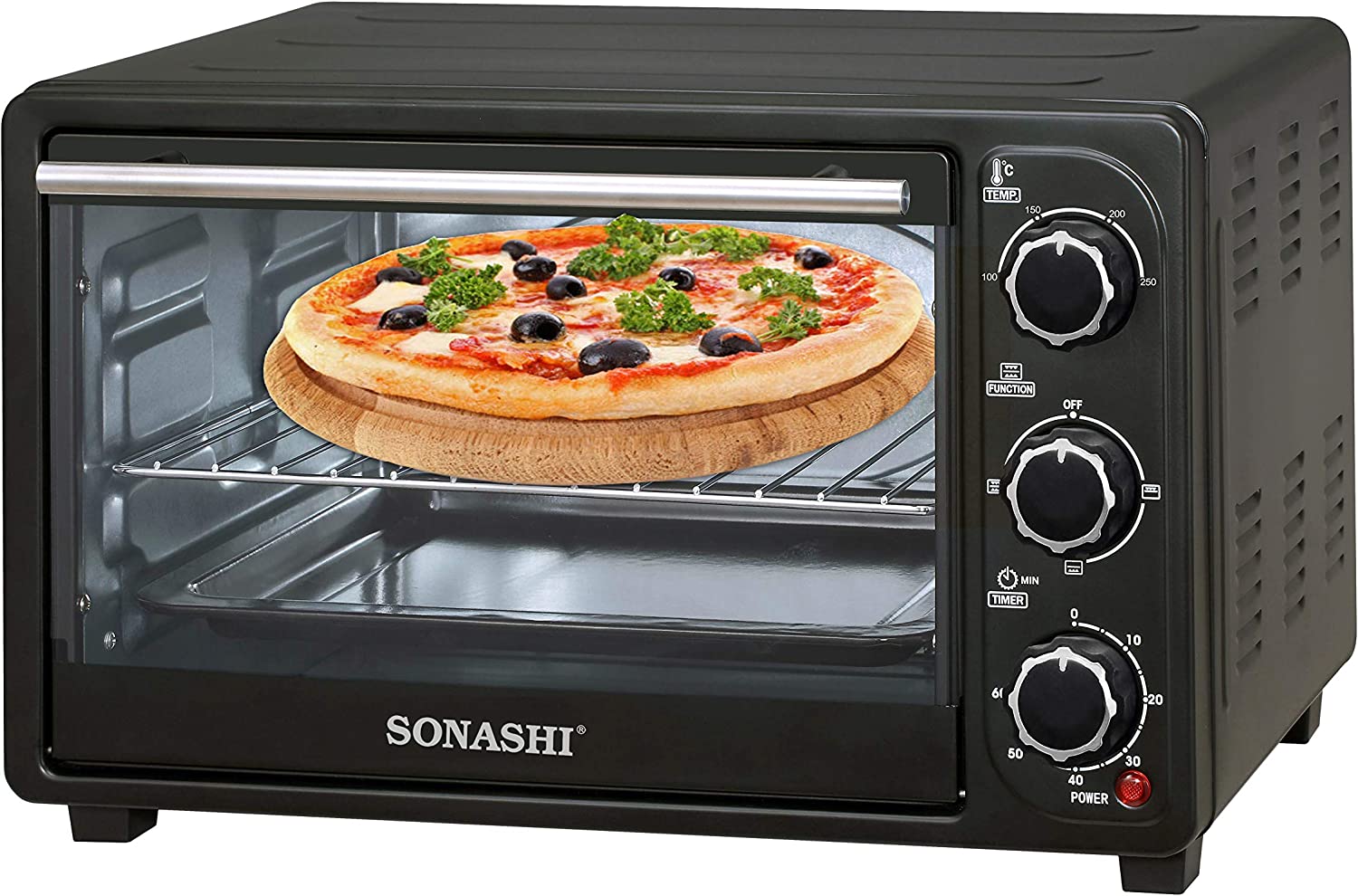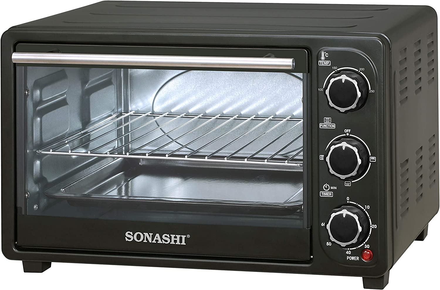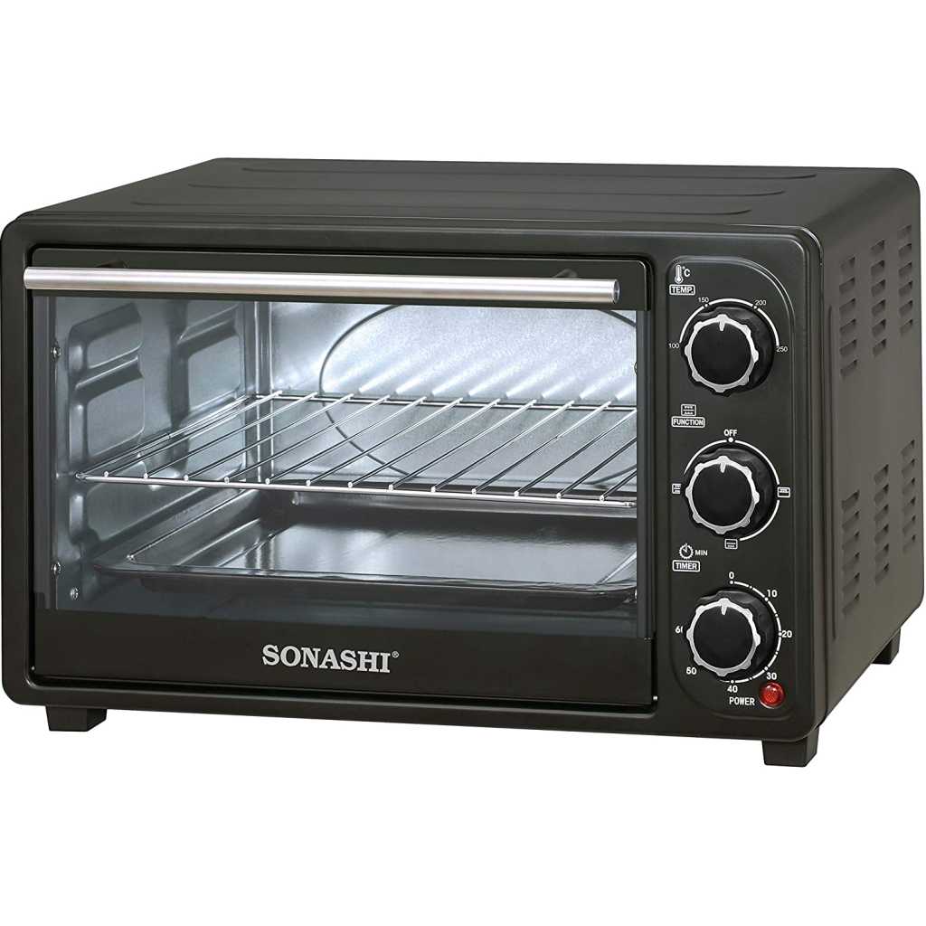 SONASHI STO-730 Electric Oven – 21L, Countertop Electric Oven with Stainless Steel Heating Element, Inside Lamp, Indicator Light, Wire Rack, Tray Handle | Kitchen Electronic Appliances.