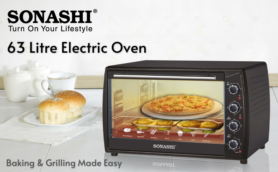 Sonashi STO-732 63 Liters Electric Oven w/Indicator Light, Inside Lamp, Cooking Accessories, Adjustable Temperature, Timer | Electric Oven | Home Appliances.