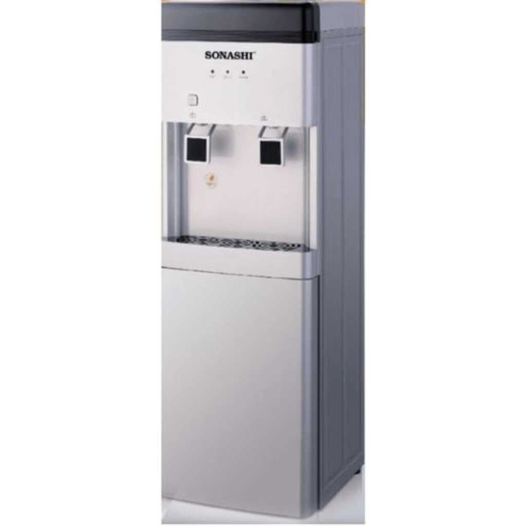 Quench your thirst with a cool glass of water provided by the sonashi Water Dispenser with Refrigerator Cabinet. This powerful, free standing water dispenser features Two faucets for dispensing water. All you need to do is hold down the desired lever, and out comes refreshing water in an instant. This device can accommodate all types of commercially available large water bottles. Onboard LED lights provide you with information about the dispenser in a glance. What’s more? This incredible water dispenser also comes with a functional refrigerator at its bottom, which can hold your lunch boxes, takeaways, smaller bottles of water, and more. The water dispenser and the fridge are made using high quality materials. This fantastic Black and Grey device, with its incredible features, makes a perfect addition to your homes and offices.