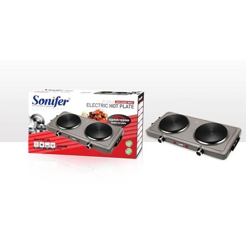 Sonifer 2 Burner Electric Hot Plate Cooking Stove- Silver This portable and easy-to-use appliance now allows you to cook easily and efficiently wherever you are. The adjustable thermostat gives you complete control of your cooking while the safety shut-off and the non-skid features ensure the product is safe to use. This elegant and powerful appliance would be a great addition to your kitchen. The RAF electric 2 burner Hotplate makes cooking faster and easier. The cooker is portable, energy-efficient, and affordable. Unlike other regular burners, the rapid heat and cool mechanism is a time and energy saver. Heat control knobs ensure you regulate your cooking to preferred temperatures. This portable single spiral hot plate has a temperature control knob and comes with a chrome drip pan which makes it easy to clean. Has efficient energy consumption with automatic switch temperature control.