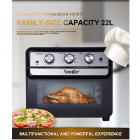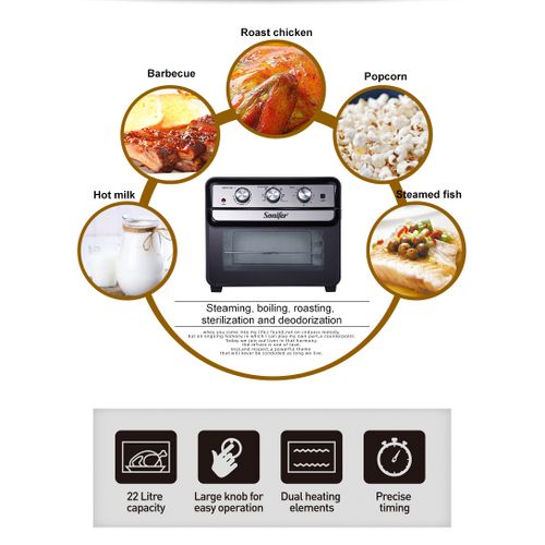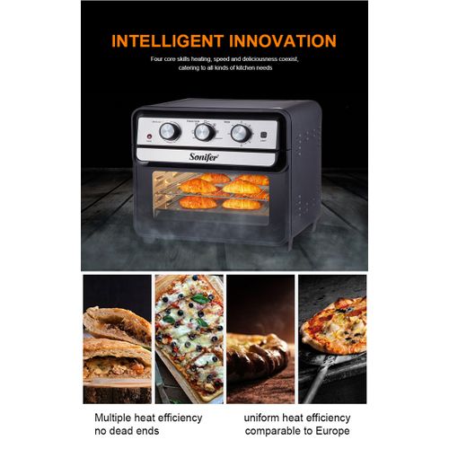 Sonifer Air Fryer Oven This unique kitchen workhorse is actually a premium full size toaster oven with a built-in air fryer. That means it not only bakes, and toasts, it also lets you air fry right inside the oven. Air frying, which uses powerful ultra-hot air, is a healthier way to prepare delicious fried favorites, from wings to fritters to fries to shrimp. And since toaster ovens stay on the countertop, this fryer doesn’t have to move back and forth, from cupboard to counter. Enjoy the crunch without the calories and messy cleanup, with the Air Fryer Toaster Oven!