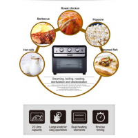 Key Features: Rapid Air Circulation System Fry Food Faster And Save Energy With Over Heating Protection Function Cool-touch Housing And Handle Color: Black 220-240V / 50-60Hz / 1500W 22L Capacity, able to fit a whole chicken 60mins timer with stay on function Up to 230°C temperature control 5 heating modes; Air Fry, Turbo Convection, Convection, Ferment & Defrost Double glazed door for effective heat retention Removable crumb tray for easy cleaning Accessories : baking tray, air fryer basket, grill rack & tray handle Product dim/wt – (L400 x W380 x H347)mm/9.2kg
