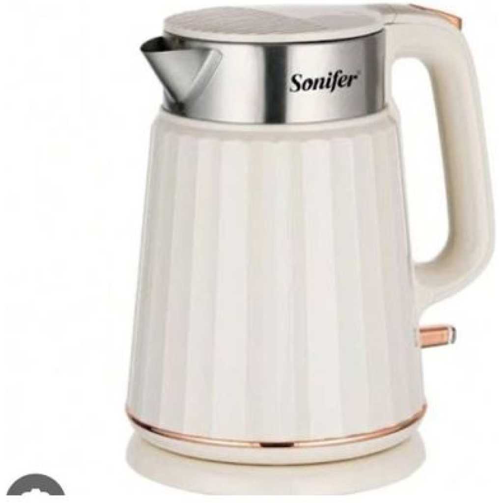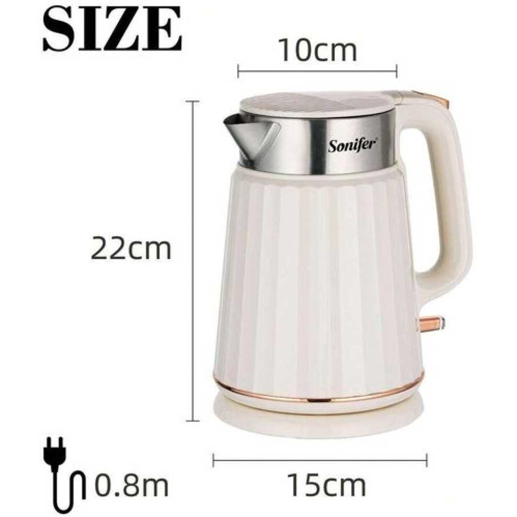 Sonifer Electric Kettle 1.3L Integrated Seamless Inner Tank 360° Rotating Cordless Power Base Concealed Stainless Steel Heating Element .Boil-Dry Protection Power Indication Light Auto Shut-Off When B