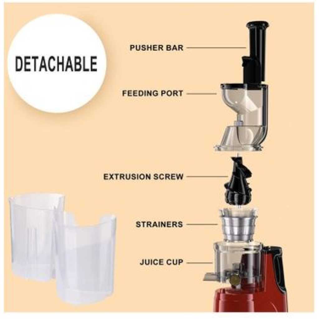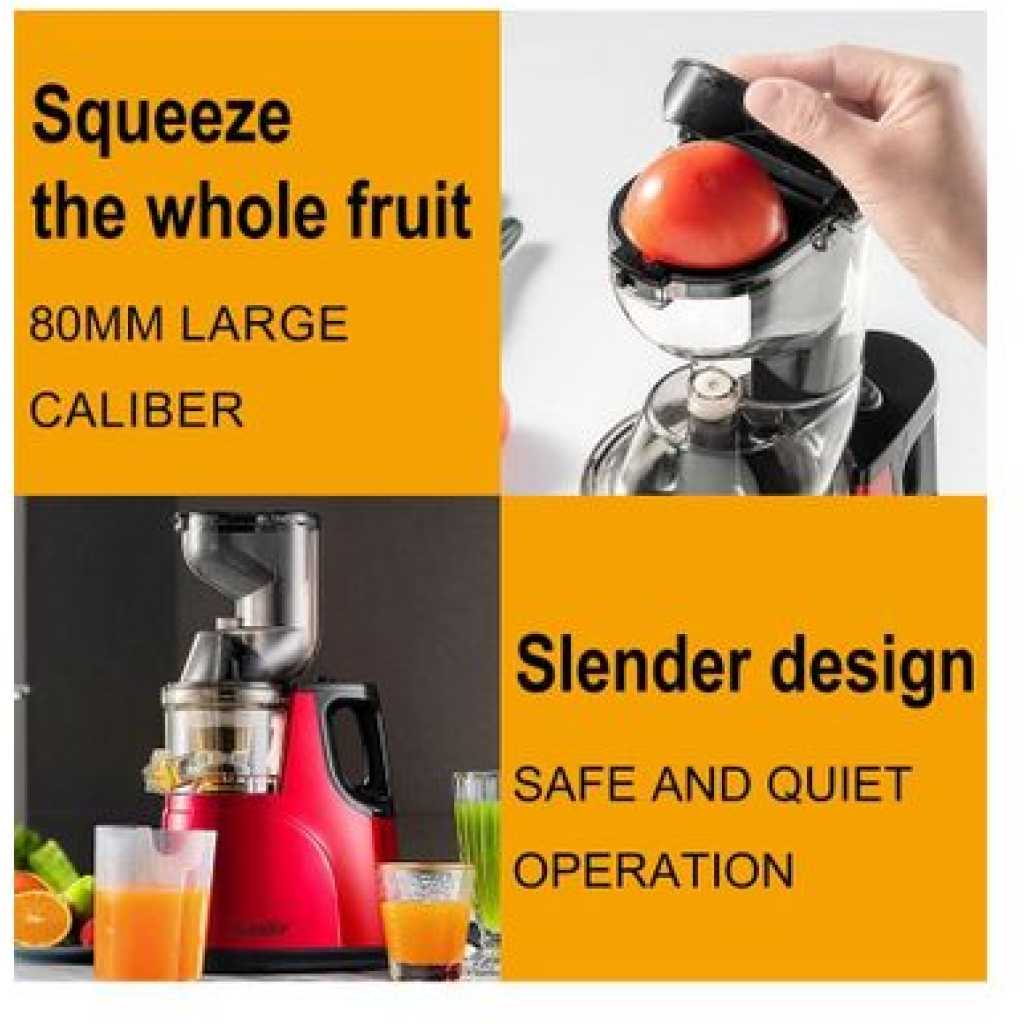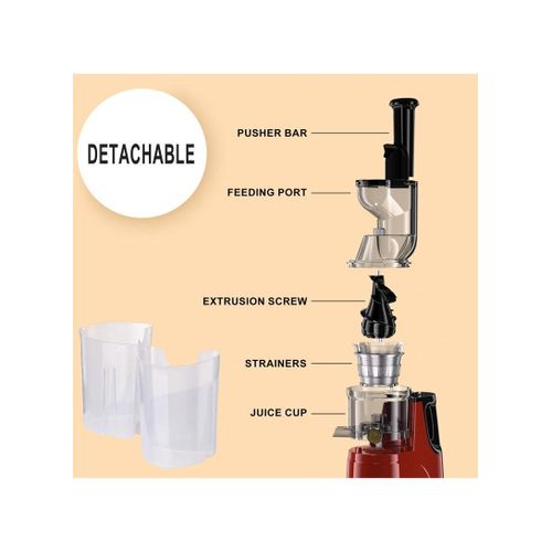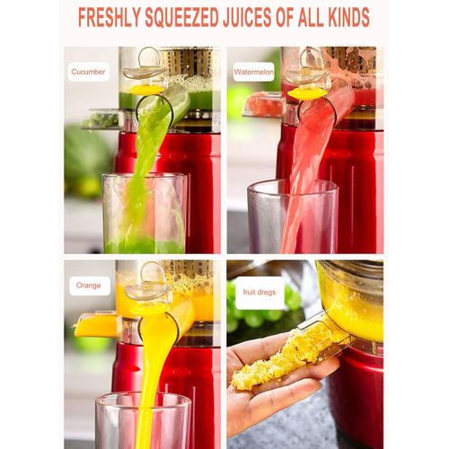 lag-juice free water separation 80mm large caliber Its speed is very slow, and it brings little heat to the juice. Therefore, you can store fresh juice for up to 48 hours without losing any nutritional value. The motor is quiet and the noise control effect is better. It runs at less than 65 decibels and will not disturb your neighbors The vertical design does not require too many kitchen countertops. Enjoy the quiet and comfortable life while squeezing juice. Equipped with two different filters, squeezing juice instead of grinding, you can get more nutrition and vitamin juice at breakfast. Carrot, orange, leafy vegetables fineness filter The electric motor works with torque, and the size of the auger is larger than the horizontal, so the vertical juicer can produce a lot of juic Its easy to take out the juice bowl and mix different juices. With a drip-free design, less juice spills from the juice bowl. All removable parts are easy to clean with a brush.
