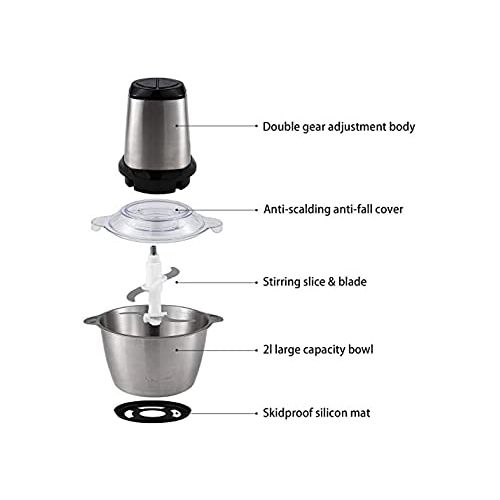 Multi-functional Electric Meat Mincer Chopper. 【Efficient & Fast Food Grinder】Our electric food proccessor will be your quick and versatile helper in the kitchen with real power 350W, giving you the choice of 2 modes to chop, mix, puree, blend and mince a variety of ingredients for you to enjoy fresh and tasty food from every angle of 360 degrees. 【Sharp Blade& Large Capacity】With the latest 4D 2021 design, the “S” shaped double blade is ideal for cutting food more efficiently and faster at any 360-degree angle. Plus, with a 2 liter (8 cup capacity) stainless steel bowl, our Oxford Street Food Chopper is stronger, healthier, and more impact resistant than any other inexpensive glass bowl. 【Easy-to-clean and non-slip design】Professional kitchen chopper are removable and easy to clean. It should be noted that our product has a non-slip mat on the bowl, ensuring a more stable and safe operation. Rubber Sealing Ring – Spill-Free, Leaving Your Kitchen Tidy Without Any Mess.