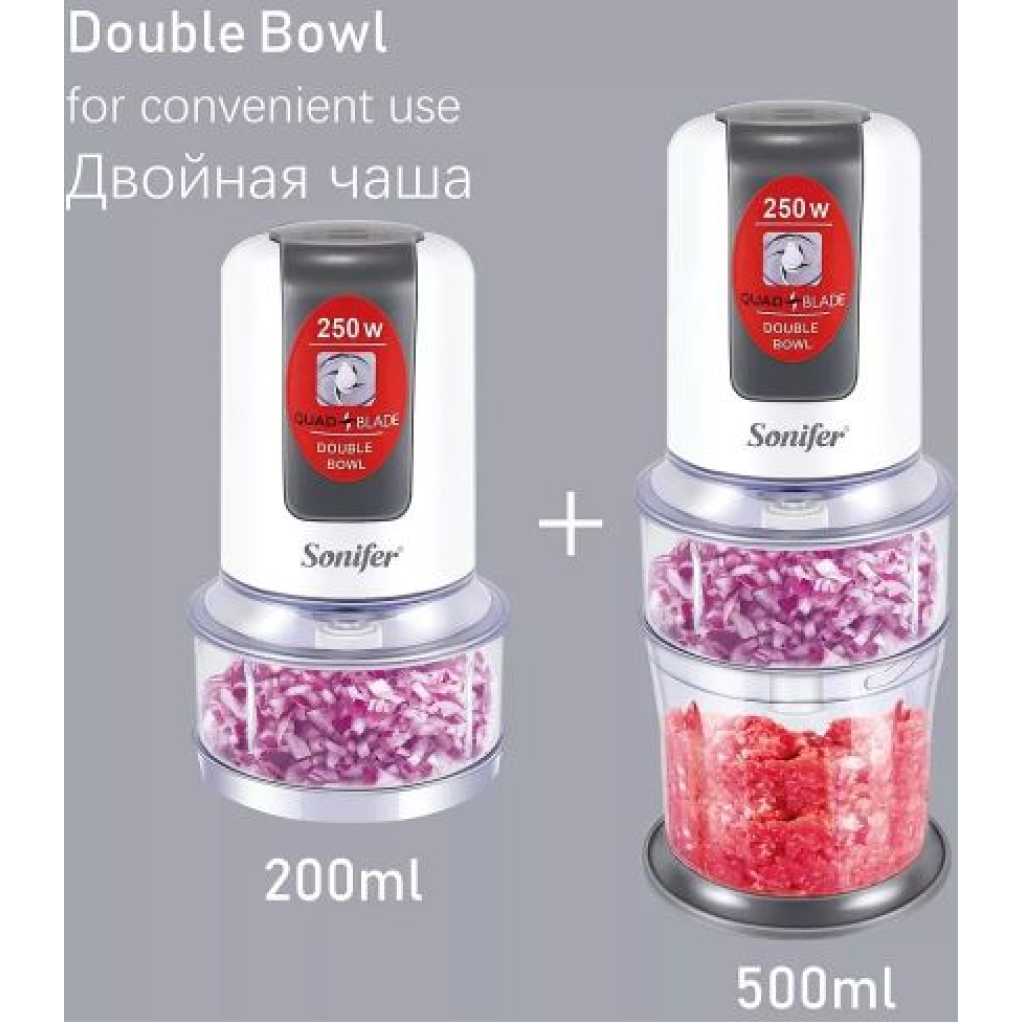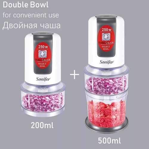 Key Features: Sonifer Multi-functional Electric Food Processor Chopper Spiral Meat Grinder Fruit Shredder Slicer- Clear. Capacity:1.2L Jar Voltage (V): 220-240V Elegant design Overheat protection Multifunction: mixing, blending, chopping 2 stainless steel blades Plastic cream attachment AC220-250V 50/60Hz 200W