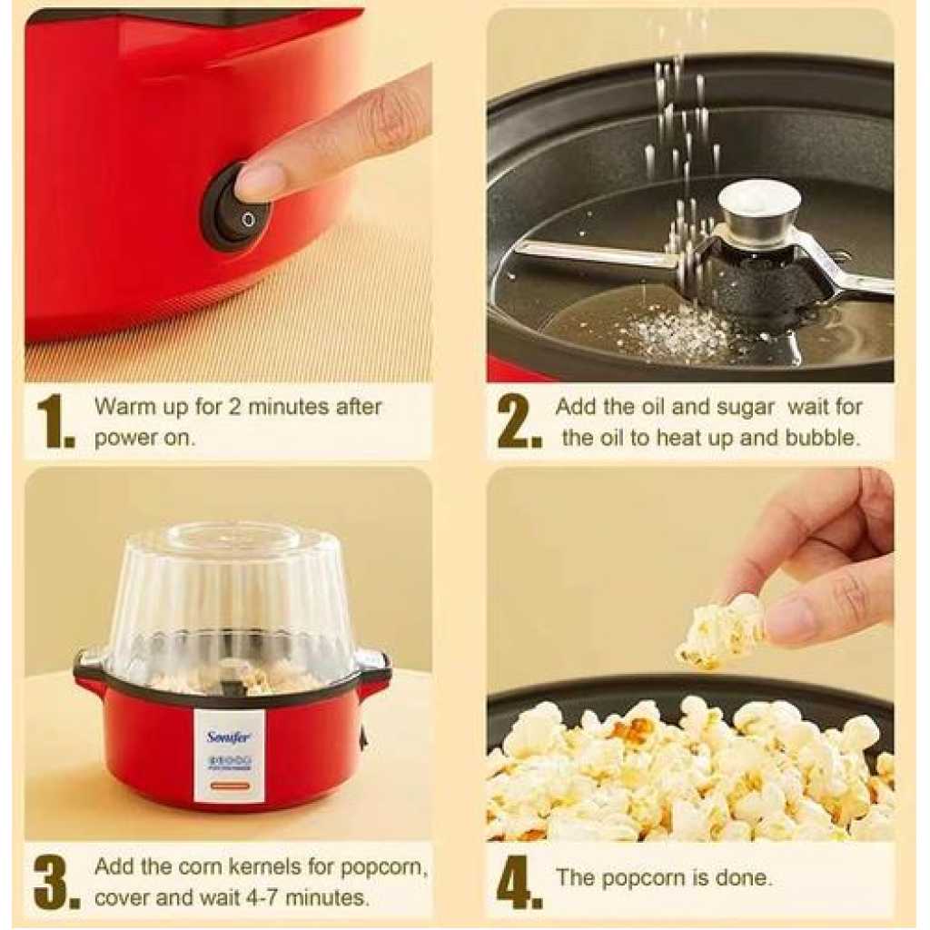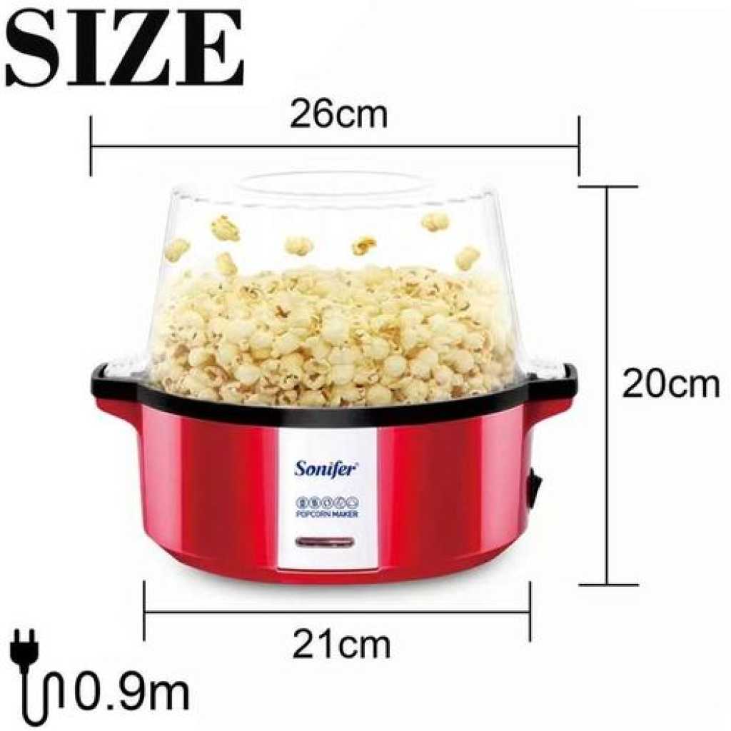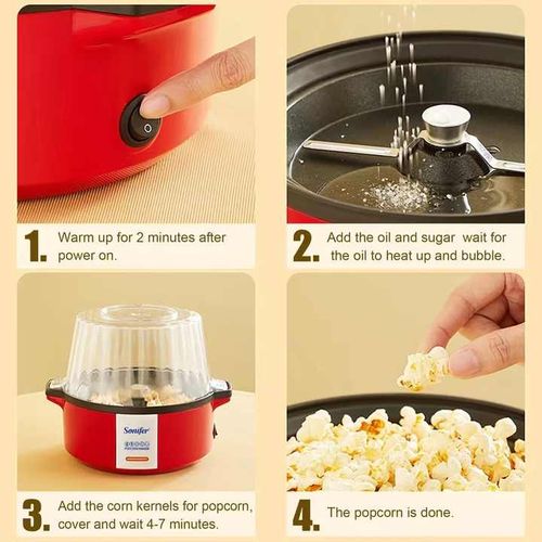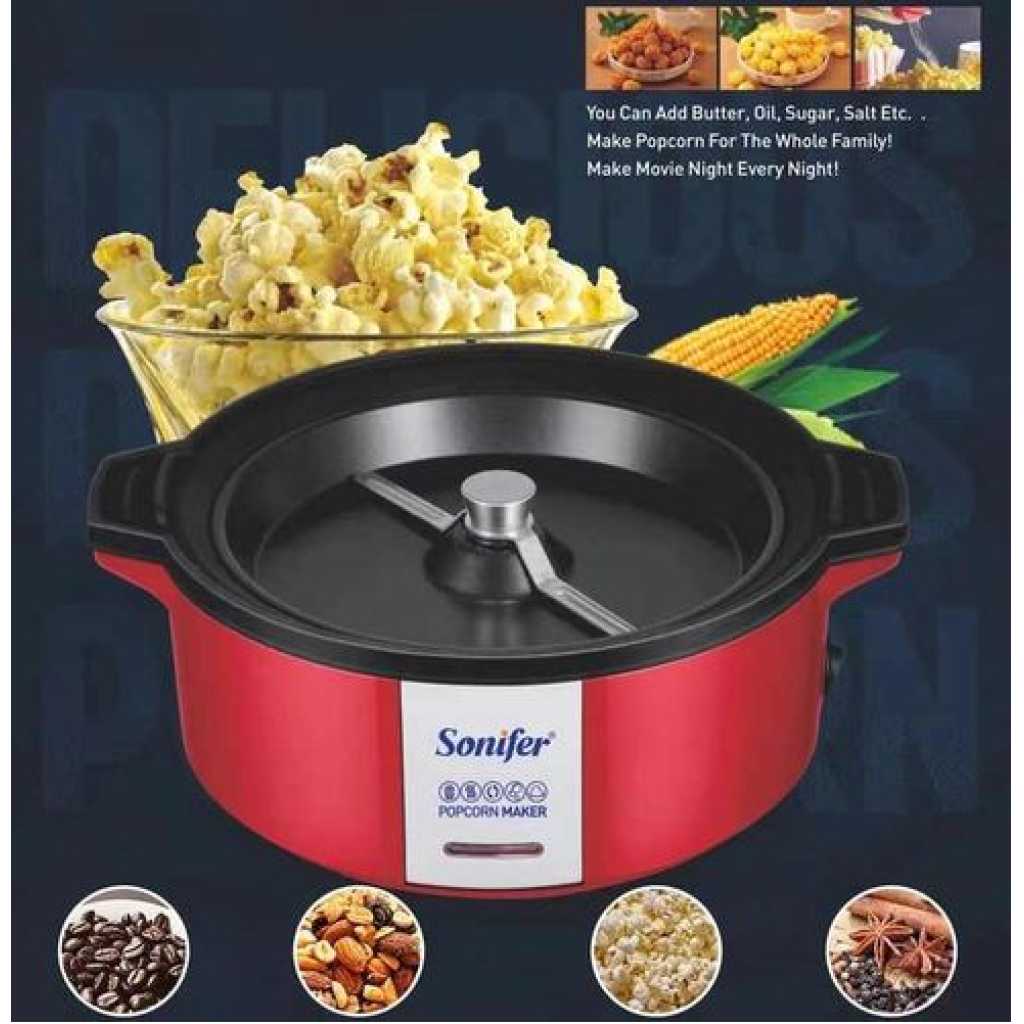 Key Features: Sonifer Professional Oil Hot Plate Multifunctional Electric Mini Popcorn Maker Machine – Red On / Off Switch Stainless steel kettle inside Includes: measuring spoon for kernels mini electric popcorn machine for home use Corns are uniformly heated 50~100 grams of corn can be popped at once Suitable for popping small corn kernels.