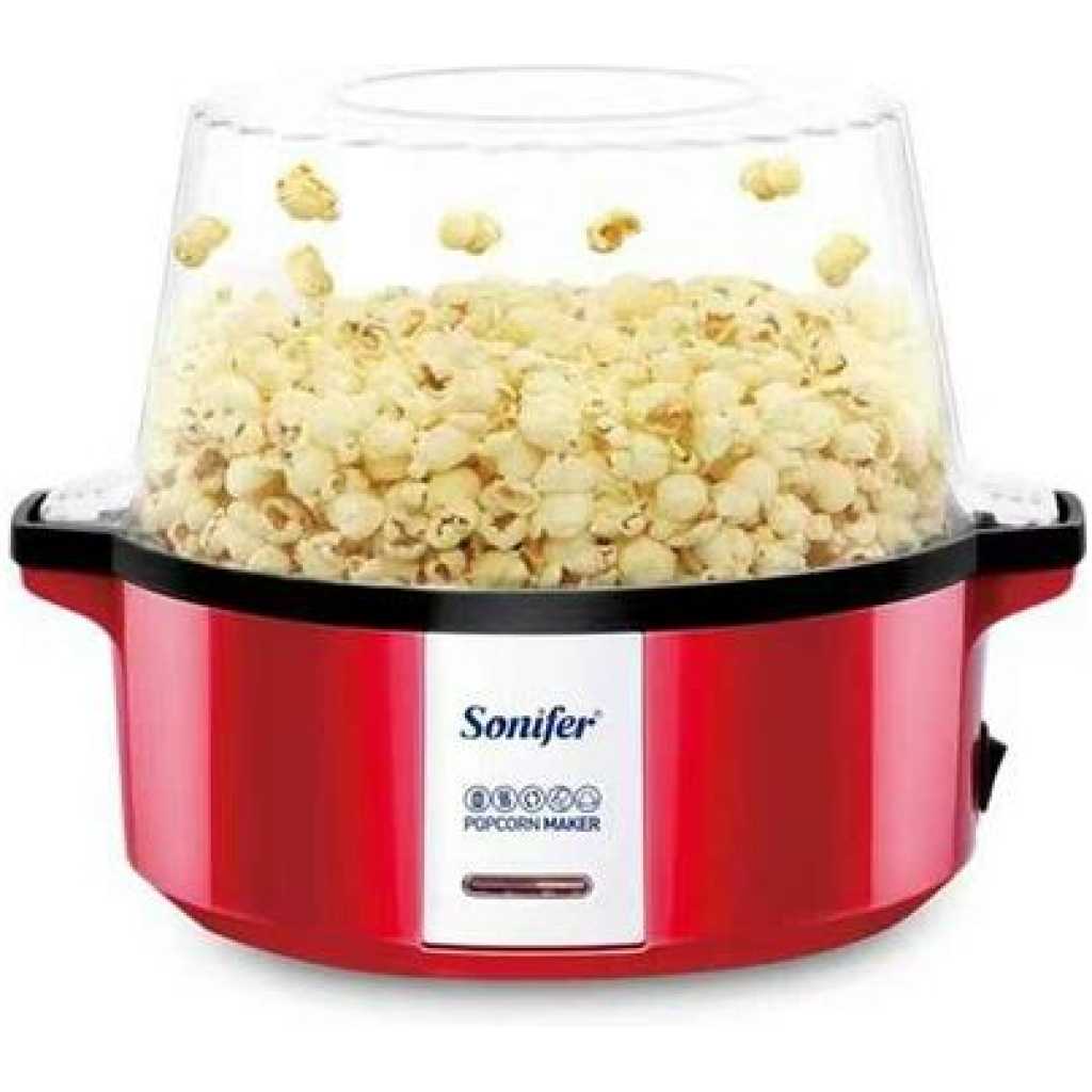 Sonifer Professional Oil Hot Plate Multifunctional Electric Mini Popcorn Maker Machine – Red Make your favorite movie night treat in just minutes. This Hot Air Popcorn Popper is easy to use – add the kernels/seeds/seeds with the built-in measuring cup, plug it in, and let the fun begin. Everyone can have their own bowl of popcorn, as this popper makes 16 cups per batch. With an air popper, you can customize the flavor by adjusting the seasonings to your liking or have it plain for a low-calorie snack. How to use Preparing popcorn in this is pretty easy. Measure the perfect amount for a full batch by using the included measuring cup. Measure with the included cup, pour the kernels/seeds into the popping chamber, replace the popping chute(slide) and plug it in, put on the button. When the popping slows down to 3 to 5 seconds between pops, unplug and your popcorn is ready to eat. Easy to clean Cleaning up is much faster. Once the machine is cooled completely, the popping chute(slide) and measuring cup can be washed in warm soapy water. And the outside of the popper can be wiped with a slightly wet cloth.