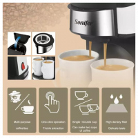 Sonifer Coffee Maker prepares all types of coffee including espresso, cafe latte, and cappuccino. This all in one coffee maker has a steam nozzle to add froth.Make your coffee breaks more exciting with the Sonifer Coffee Maker. With its steam nozzle, you can also add froth to your coffee and make it more appealing. All the more, you can make your coffee just the way you like, be it cappuccino, espresso, or cafe latte. The coffee maker features an automatic steam pressure pump of 15 bar and a transparent removable water tank of 1.6L. The warm tray on its top keeps your coffee hot when you are preparing more than just a few cups for your guests or friends. Enjoy sipping your delicious coffee that will refresh you and keep you awake.