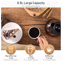 Key Features: For 2 cups of coffee (approx. 240 mI) Includes two porcelain cups On/off switch with light indicator Removable and washable filter and filter holder Non-slip feet Includes coffee plastic spoon AC220-240V 50/60Hz 450W
