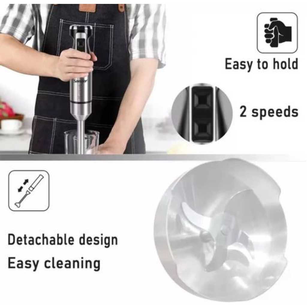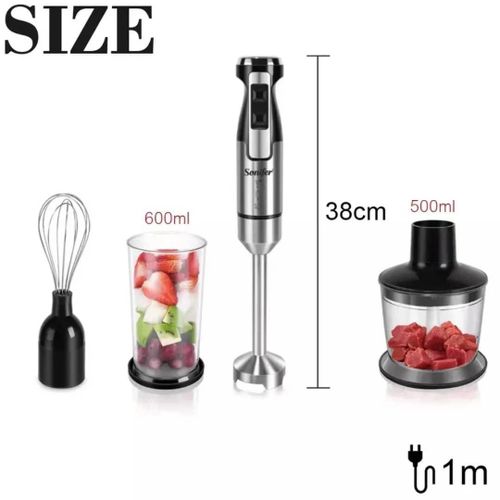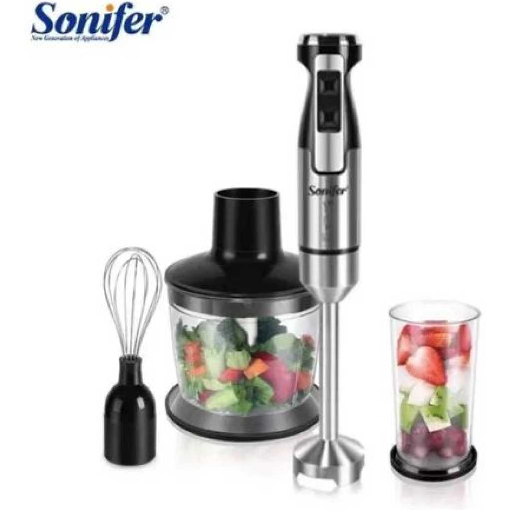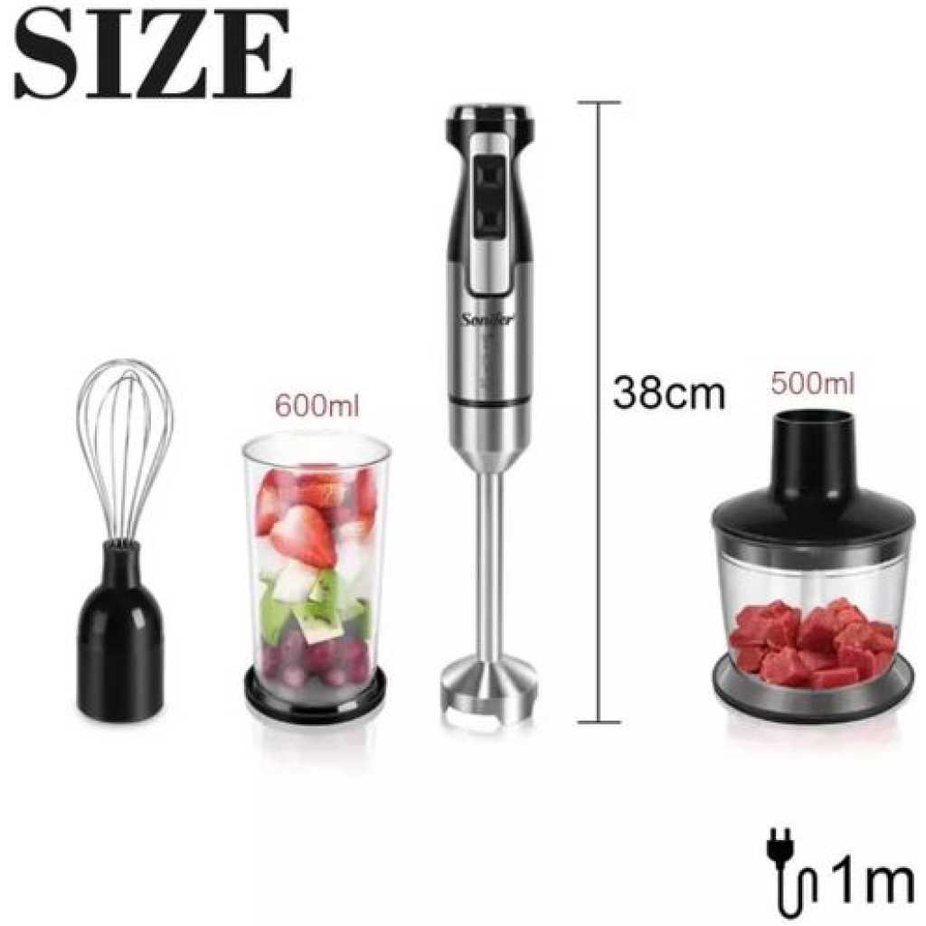 Key Features: Multifunctional hand blender set 10 in 1: purée stick contains whisk, dough hook, whisk, mixer, hand blender, replaceable blade, 500 ml (17 ounces) meat grinder, 800 ml (27 ounces) chopper and 600 ml (21 ounces) measuring cup. You can easily make baby food, soups, smoothies, sauces and much more. Sonifer hand blender is the perfect combination for family tasks, it will meet all your requirements Powerful 800 W copper motor: hand blender with 800 W powerful motor with 6 speed control turbo and 4 sharp 304 stainless steel blades. This speeds up and facilitates food preparation and offers you a unique culinary experience. Easy to chop nuts and mashed potatoes, perfect for cutting hard ingredients efficiently. Comfortable hand feel and splash guard: Built with an ergonomically shaped body for a secure hold and comfortable mixing. The wave shape at the bottom of the hand blender prevents splashing or splashing during mixing. The powerful Sonifer hand blender is a universal assistant in any kitchen. Healthy and easy to clean: the Sonifer hand blender is easy to disassemble, easy to clean and can be cleaned in the dishwasher (except engine parts); stains on the housing and sticking food residues can be easily cleaned with a damp cloth. The cup, meat grinder and chopper are made of food-safe plastic, which is safe and non-toxic.