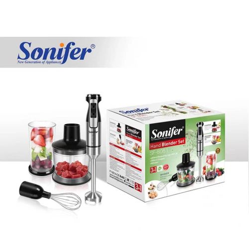 The Sonifer SF-8081 Hand Blender Set is now available in Bangladesh. Get the original products at the most affordable price at BDSHOP.COM and enjoy the quality with the promise of the best customer service in Bangladesh. Specifications Whisker Makes pastry, cream, beat eggs Chopper makes all kinds of auxiliary materials, meat filling Measuring cup with lid for juice milkshake 600ml measuring cup with lid 500ml chopper Whisker attachment • 3-in-1 Hand Blender Set by SoniferMaterial: Stainless Steel Frequency: 50/60Hz Voltage: 220-240V Power: 500W