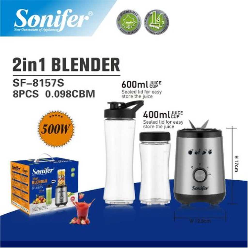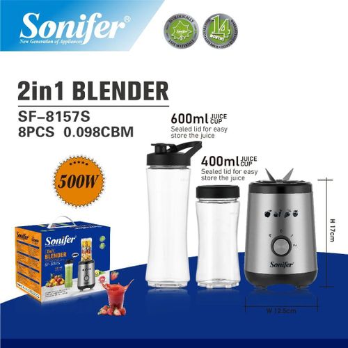 Sonifer SF-8157S 8PCS 500W Home Kitchen 2 in 1 Multifunctional Mixer 600ml & 400ml Cups Blender High-efficiency High Power Portable 4-Blade Stainless Steel 2-Speeds Control Overheat & Safety Switch El