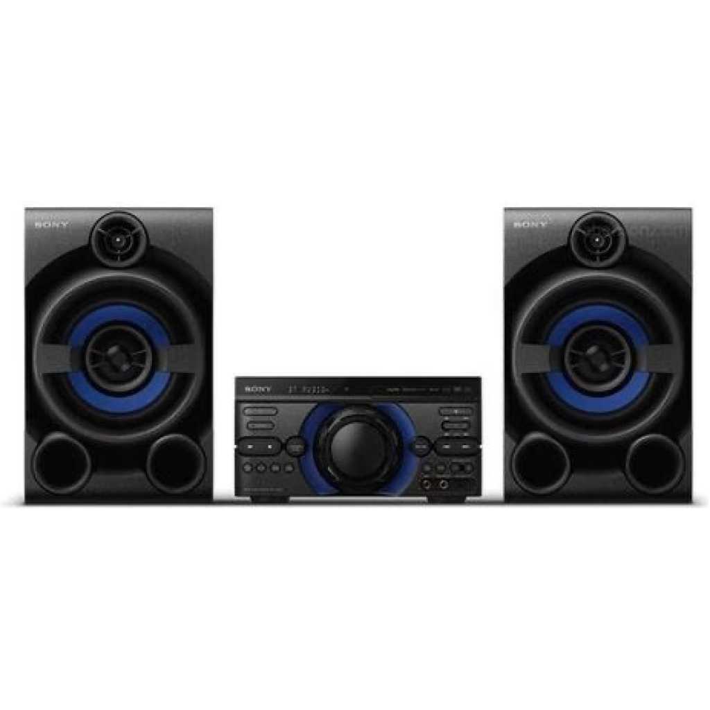 Sony High Power Audio System with DVD Radio Bluetooth MHCM40D- Black The MHC-M40D is a sound system made for party hosts who take pride in their playlists. Enjoy high quality sound, wireless audio streaming and seamless connectivity. Be the party king Share your party status on social media with just one click from the Fiestable app. Then, turn up the music and climb the party people ranks to become the certified Party King. Calling all karaoke lover Break out the karaoke. There are two mic in High quality music streaming Seamlessly stream music in high quality with LDAC™and BLUETOOTH® technology Boost the quality of your music The Digital Sound Enhancement Engine (DSEE) restores audio quality in compressed digital music Unleash your inner pop star Keep everyone entertained – with two mic inputs you and your guests can go head-to-head singing along to your favourite tunes. Add a rock and roll layer by alternatively connecting a guitar to one of the inputs and using the system as a guitar amp. Enjoy three modes – Clean for a clear sound, Overdrive for a distorted guitar sound and Bass for your bass guitar. Boost the party with extra speaker Enjoy more powerful sound by connecting multiple home audio systems via Bluetooth®. Connect up to 50 compatible home audio systems and synchronise the music and lighting Run everything from the dancefloor The Sony – Music Center app lets you control music and sound settings right from your phone. The Fiestable app lets you activate DJ and karaoke modes. Make changes with a flick of your wrist, thanks to intuitive motion control. Built-in DVD player for film lover Watch movies easily thanks to a built-in DVD player and enjoy rich sound that brings your favourite scenes to life. Connecting your TV is simple – all you need is an HDMI cable. Stadium thrills at home with Football Mode Shift the MHC-M40D into Football Mode to enjoy an authentic stadium experience. Choose narration off and immerse yourself in the crowd, by minimising narration volume and increasing crowd cheers Enjoy cinematic audio with surround sound Enjoy immersive, cinematic audio, and virtual surround sound in your living room with S-Force Front Surround, a technology that reproduces a virtual surround acoustic field Full Specifications & Features Karaoke and guitar inputs let you sing and play along Integrated DVD player with HDMI o Control DJ effects with the Fiestable app Integrated DVD player with HDMI out Football mode Link systems with Wireless Party Chain via Bluetooth®