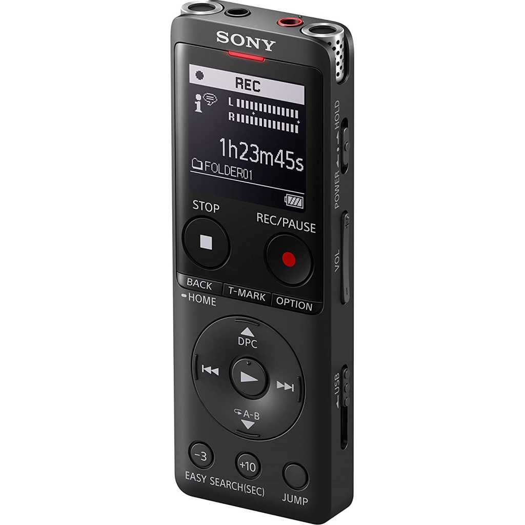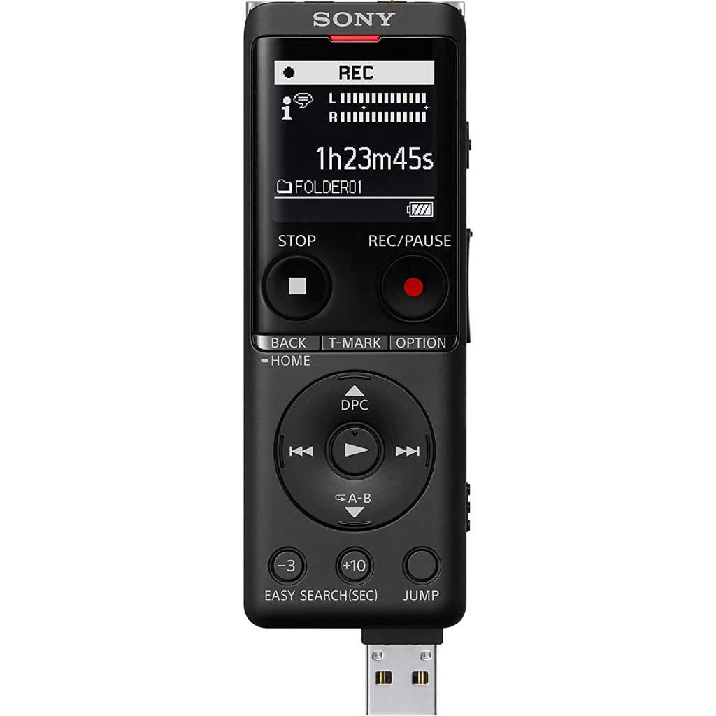 Key Features: Sony ICD-UX570 Digital Voice Recorder, ICDUX570, Built-in Battery, 4GB Storage, Expandable Memory – Black. Enhanced sound quality Newly updated slimmer design Built-in stereo microphone and voice-operated recording Three recording options: wide/stereo, narrow/focus, and normal Quick charge; up to 1-hour recording time, with a 3-minute charge