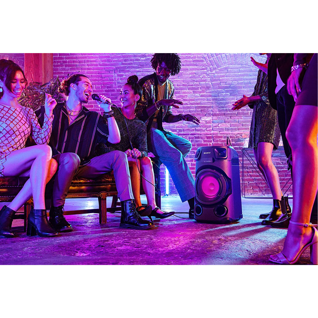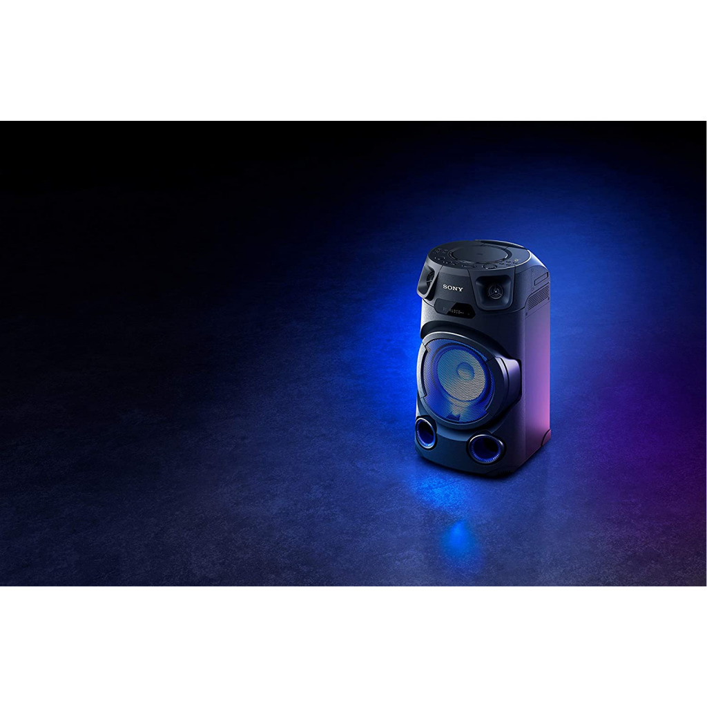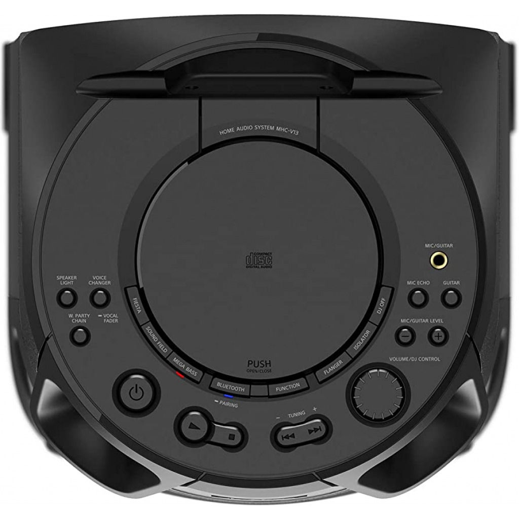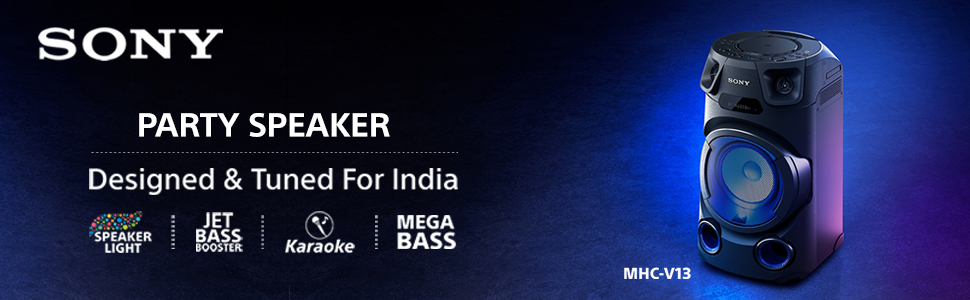 Key Features: Sony MHC-V13 Wireless Bluetooth Portable Party Speaker (Black) Jet Bass Booster :Feel the beat at Long distance with Jet Bass Booster Speaker Light : Enjoy an authentic or festival atmosphere with speaker light Karaoke/Guitar Input: Karaoke & Guitar Input to unlease your inner POP Star Bluetooth & NFC connectivity :One touch wireless listening with NFC and Bluetooth Music center & Fiestable App :Control music and sound settings right from your phone. Plus, the Fiestable app puts you in charge of the light colours and lets you activate DJ and karaoke modes Karaoke Ranging :Find your Singing Superstar with Karaoke Ranking via Fiestable APP CD Player : Now you can enjoy your favorate movies through CD playback Handle : Just hold the convenient carry handle to easily move the party between rooms