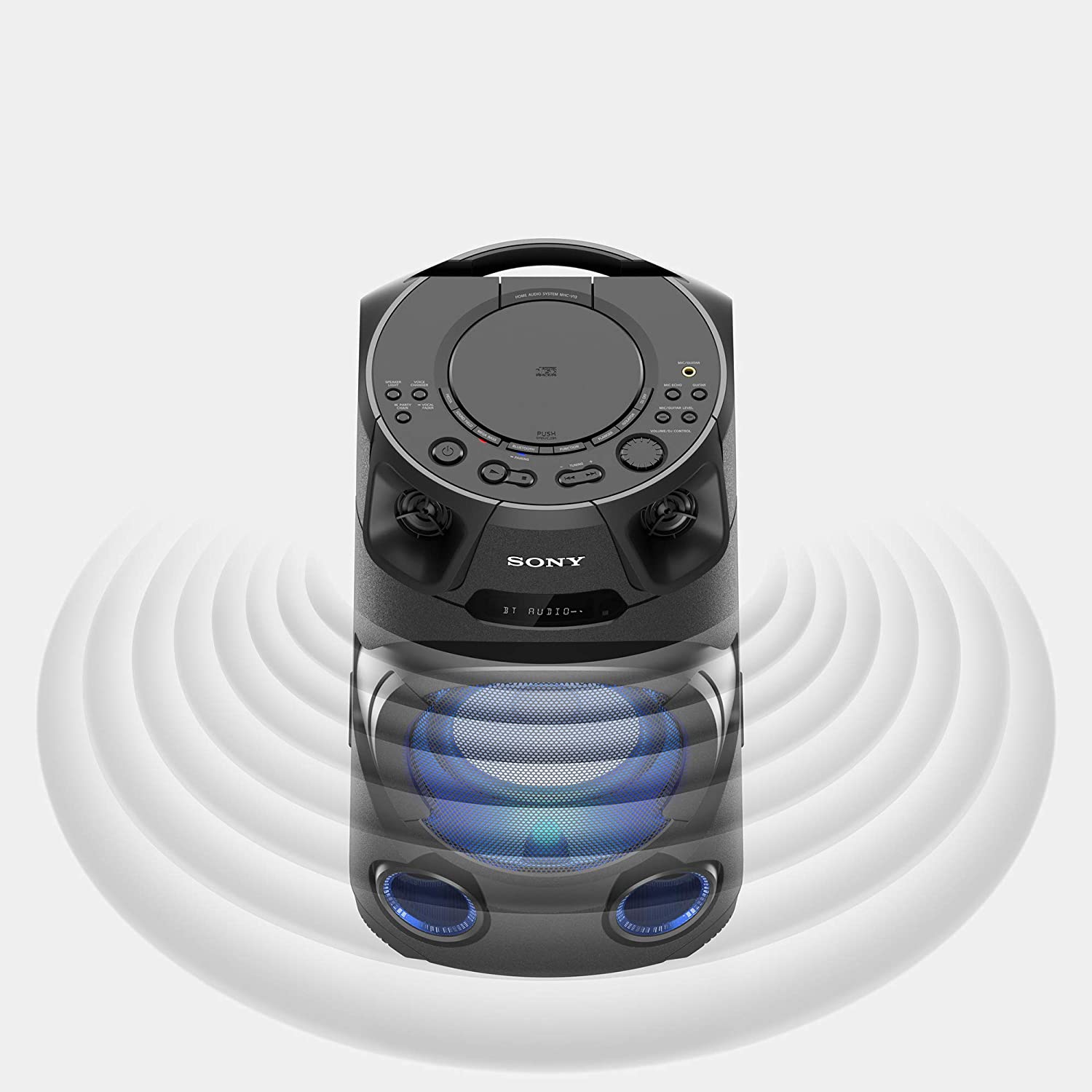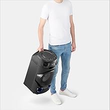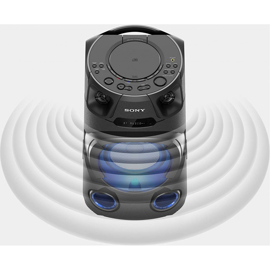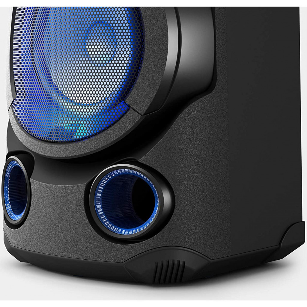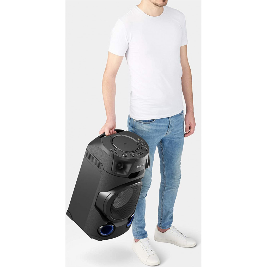 Key Features: Sony MHC-V13 Wireless Bluetooth Portable Party Speaker (Black) Jet Bass Booster :Feel the beat at Long distance with Jet Bass Booster Speaker Light : Enjoy an authentic or festival atmosphere with speaker light Karaoke/Guitar Input: Karaoke & Guitar Input to unlease your inner POP Star Bluetooth & NFC connectivity :One touch wireless listening with NFC and Bluetooth Music center & Fiestable App :Control music and sound settings right from your phone. Plus, the Fiestable app puts you in charge of the light colours and lets you activate DJ and karaoke modes Karaoke Ranging :Find your Singing Superstar with Karaoke Ranking via Fiestable APP CD Player : Now you can enjoy your favorate movies through CD playback Handle : Just hold the convenient carry handle to easily move the party between rooms