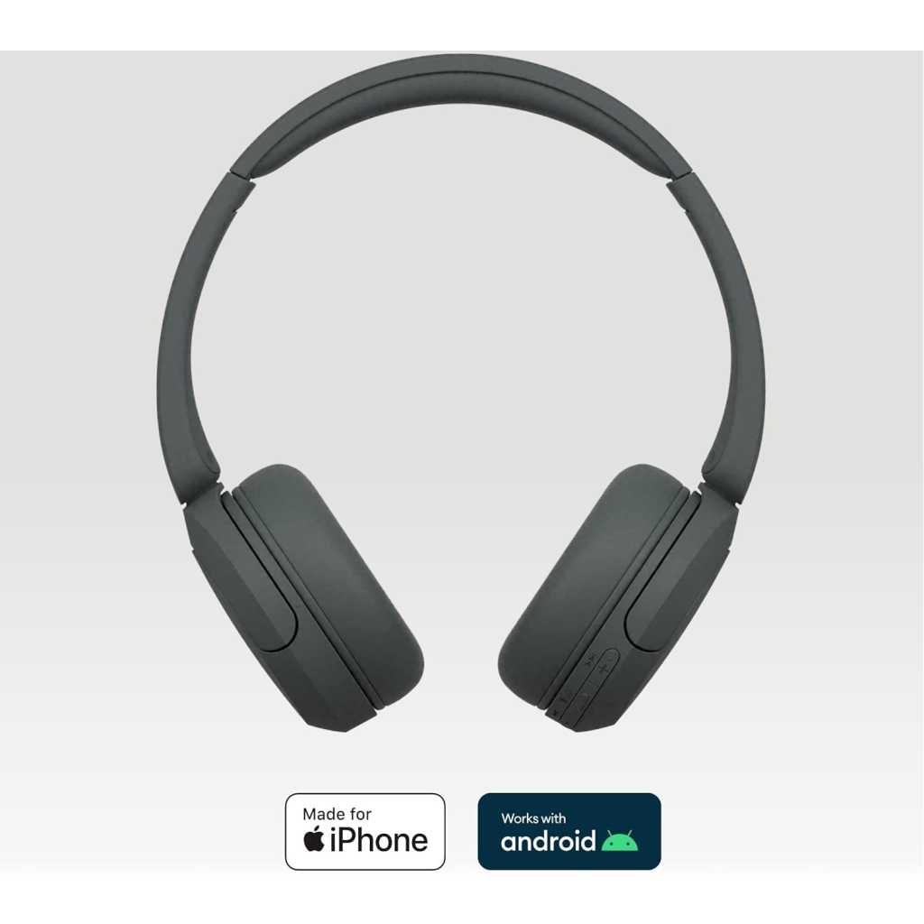 Key Features: The WH-CH520 has a Bluetooth multipoint connection, easy button operation and can even be controlled with your voice. Easy pairing with Swift Pair and Fast Pair, these Sony headphones are ideal for everyday use. With a battery life of up to 50 hours, you can listen to your favourite music without worrying about the battery. If the battery of your headphones runs low, a 3-minute quick charge gives you 1.5 hours of listening to music. The Digital Sound Enhancement Engine (DSEE) restores your music with high frequencies and gradually decreasing sound for a more authentic performance. With the EQ settings in the Sony Headphones Connect app, you can even adjust the sound to your own taste and create an individual listening experience. Take calls with a click of the buttons on the ear cups without having to take your phone out of the case. Thanks to the high-quality built-in microphone and noise cancelling, the WH-CH520 records the sound and reduces ambient noise during the conversation, so you can have clear conversations even in noisy environments. With the adjustable headband, soft ear pads and lightweight design, you can find the perfect fit for you, so that the on-ear headphones stay comfortable for longer. Compatible Devices: Cellphones