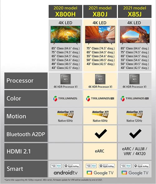Key Features: Sony X750H 49-inch TV: 4K Ultra HD Smart LED TV With HDR Processor – Black 4K HDR PROCESSOR X1: See premium 4K pictures, rich with real-world detail and texture. Upscale everything you watch to near-4K with 4K X-Reality PRO TRILUMINOS Display: See exactly what the creator intended with advanced color and gradation GAME MODE: Take your PlayStation experience to the next level with a Sony 4K gaming TV featuring dedicated Game Mode for a smoother, more responsive gaming experience SMART ANDROID TV with GOOGLE ASSISTANT: Use your voice to control your TV and smart home devices, easily search for movies and shows, get answers, and manage tasks WORKS WITH ALEXA: Stream smart camera feeds with your voice. Through an Alexa enabled device, just ask Alexa to play music, launch video apps, turn up the volume, and more APPLE AIRPLAY 2 and HOMEKIT SUPPORT: Seamlessly integrate your iPhone and Siri devices with your Sony TV for effortless smart home management and content streaming HDR and DOLBY VISION: Bring scenes to life with striking highlights, deeper darks and vibrant colors MOTIONFLOW XR: Less blur, even in fast scenes. Content appears with lifelike motion