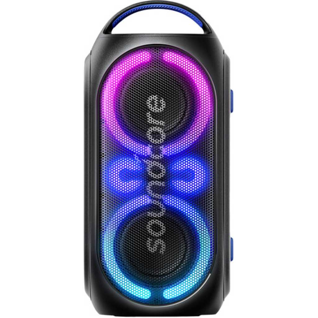 Key Features: 120W of Audio Power Dual 4″ Woofers & 2″ Tweeters IPX4-Rated Water Resistance Multi-Color LED Light Show 7 Light Effects or Customize Your Own Sing Along with an Optional Microphone Up to 18 Hours of Playback Charge a Mobile Device via USB-A 3.5mm AUX Input for a Wired Source Built-In Carry Handle