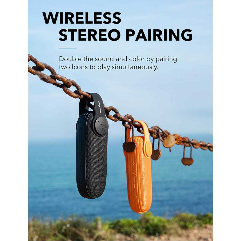 Key Features: Soundcore Icon by Anker Wireless Bluetooth Portable Speaker. Fun-proof: Wanna get wild? Icon does too. With IP67 protection, It breezes through water, sand, dust, snow, and mud. It even floats. Don’t stop the beat: when the day ends, The music keeps going. Get 12 hours of iconic sound from a single charge. Go stereo: double the sound and color by pairing two icons to play simultaneously.