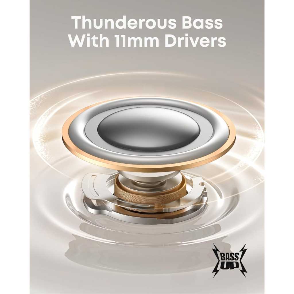 Key Features: Ultra-long Battery Life: Listen for up to 12 hours on a single charge; the case extends this to 192 hours. A quick 10-minute charge gives you an extra 5 hours of listening time. Adaptive Noise Cancelling: The earbuds constantly monitor your surroundings and use advanced algorithms to block external noise, so you stay fully immersed in your audio when you’re on the go. Thunderous Bass: Powerful 11-mm composite drivers deliver captivating sound enhanced by BassUp technology for intense, high-impact bass. Superior Call Quality: 6 microphones and AI noise reduction ensure you’re heard loud and clear on important calls or urgent voicemails, wherever you are. Built-in Phone Stand: Watch your favourite shows on the move with ease. The patented design automatically snaps the stand back into its storage slot when you close your case for complete convenience.