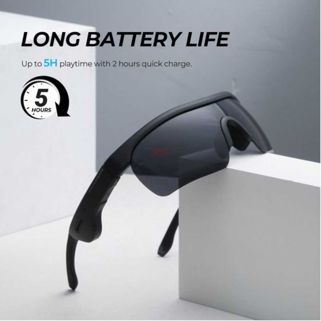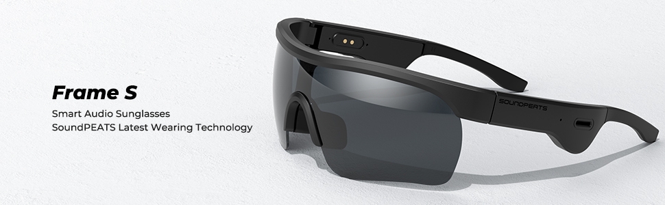 SoundPEATS Frame- Smart Audio Glasses with Open Ear Earphones, Bluetooth Glasses Speaker 【Open-Ear Audio & Multi-Connection】 The smart audio sunglasses with open-ear speakers, which are powered by Qualcomm 3034 and Bluetooth 5.1 aptX HD technology, can ensure low power consumption and low latency. With multi-connection mode, the audio glasses support connecting 2 phones at the same time, whether the phones are iOS or Android systems, it can achieve easy and stable pairing in 33 ft(10M). 【16mm Drivers & Dual-Mic 】Designed with the 16mm super big drivers, SoundPEATS Frame S smart sunglasses deliver extraordinary crystal-clear fine sound and a wide sound stage. The glasses are built-in with dual mics and cVc noise reduction technology, which can enhance the call voice clarity and reduce the ambient noise around to make you enjoy smooth calls, music, navigation, and voice assistant anywhere at any time. 【One-key Control & 5H Playtime】With Bluetooth glasses, you don’t have to pick up your phone all the time when you listen to music and make phone calls while driving, jogging, or walking. The button in the frame provides easy access to control volumes, answer/hang up calls, pause/replay music, switch music, activate voice assistant, etc. The smart glasses can be fully charged in 2 hours via a charging adapter, which supports 5 hours of playtime. 【IPX5 Waterproof & Anti-UVA/UVB 】Our Bluetooth glasses are IPX5 waterproof which can resist sweat and splashing water. You can still enjoy sports, music, and calls in these situations. Equipped with UVA/UVB rays protecting coat, the glasses can block 99% of rays to protect your eyes from damage on sunny days, and bring clear comfortable sight for outdoor activities, like driving, cycling, and walking. 【Ergonomic Design & Comfortable Wearing 】With weighing 1.55oz and ergonomic design, the glasses are easy to carry out and support long-time wearing without any discomfort. With stylish black color, sunglasses are suitable for both men and women. Plus the extra glasses cloth and 2* nose pads, you can keep sunglasses clean and use them for a long time.