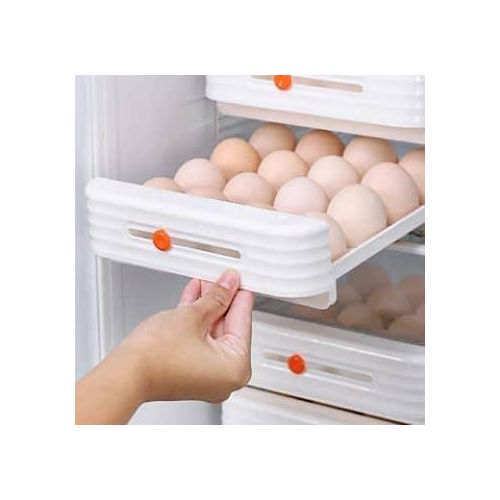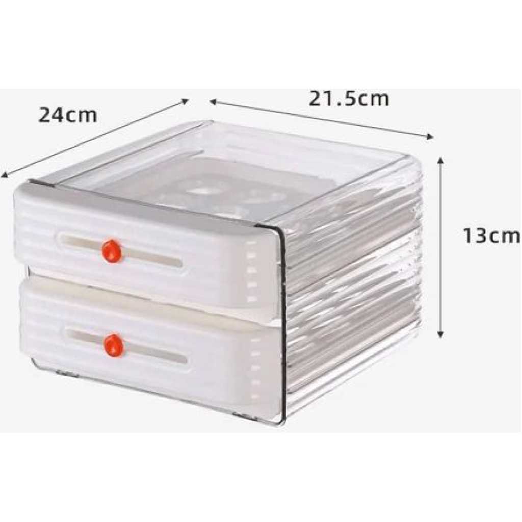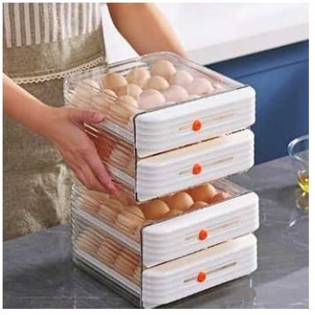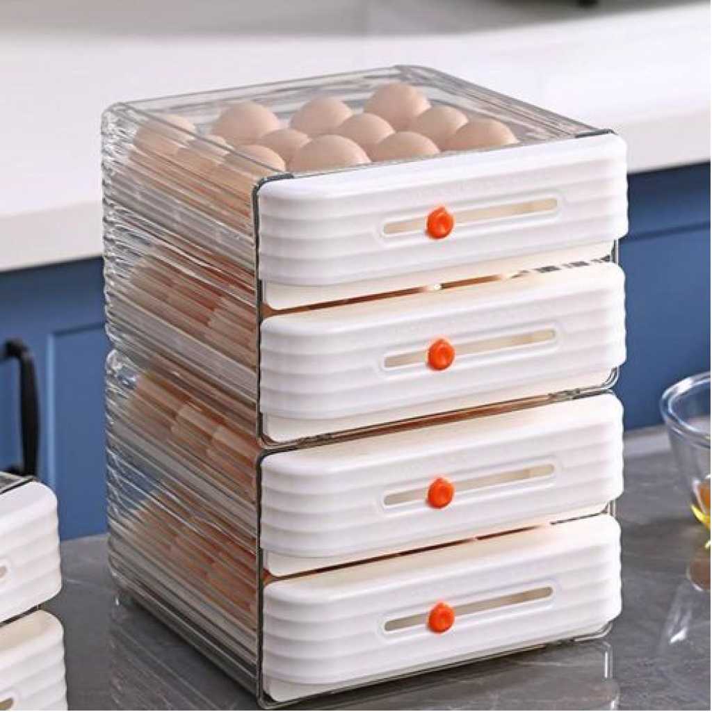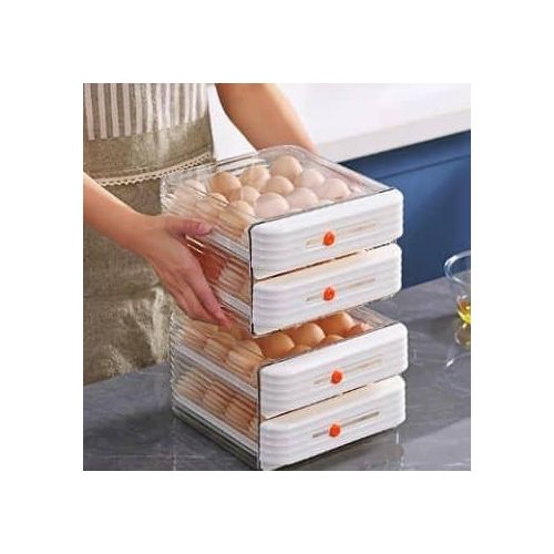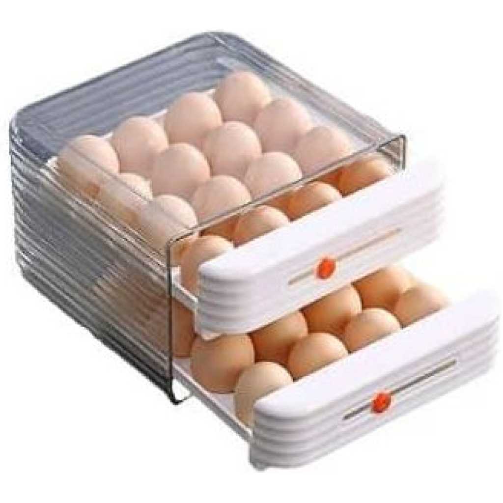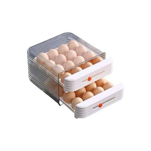Space Saving Multifunctional 2-Layer Stackable Refrigerator Egg Tray Storage Organizer With Data Slider 32 Grids Drawer Type Egg Holder BPA Free Clear Plastic Fridge Storage Bin Clear Fresh Storage Bo