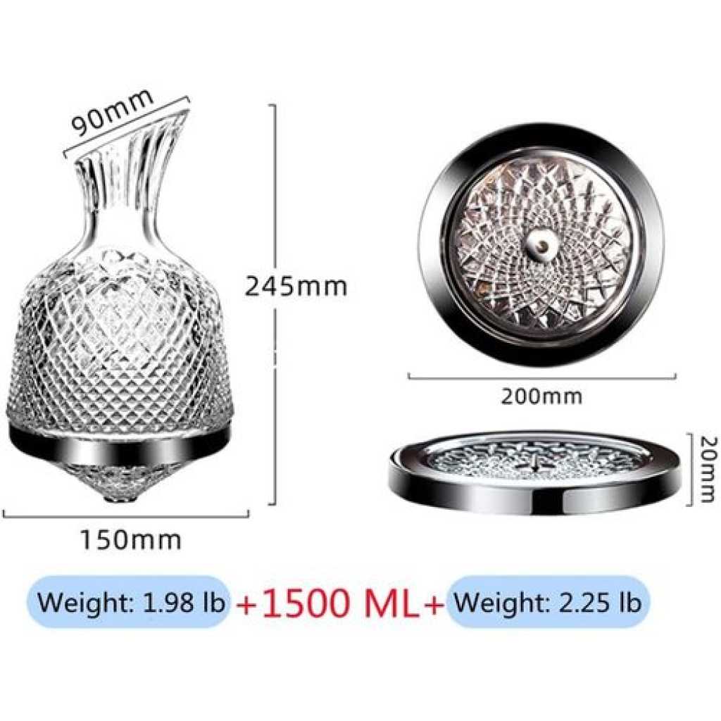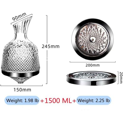 Wine tasting requires a good atmosphere and a good tool to activate the original taste buds. Our wine decanter set is made of lead-free crystal. It is cutted by hand with diamonds. The wine glass has a unique shape and can rotate 360 degrees. It can decanter the wine healthy and quickly while retaining the original aroma of the wine. The wine crystal is a good helper for business reception and family gatherings. It can be used to sober up,and it can also be used to hold fruit juices, etc. Of course, the wine decanter that shines like a diamond is also given as a wedding gift to the secret sister gift exchange. Product details: Weight of decanter: 1.98 lb Base weight: 2.25 lb Capacity: 1500 ml Maintenance method: 1.The crystal spinning decanter ball is slightly heavier, please handle it gently. 2.Rinse and drain with clean water. The wine decanter crystal is a little heavier. Please handle with care. 3.Please keep wine crystal bottle out of the reach of children.