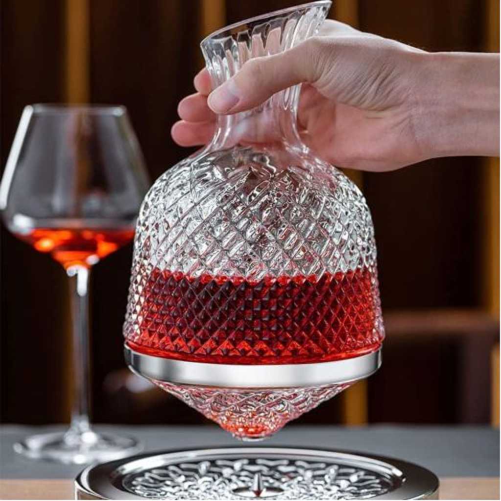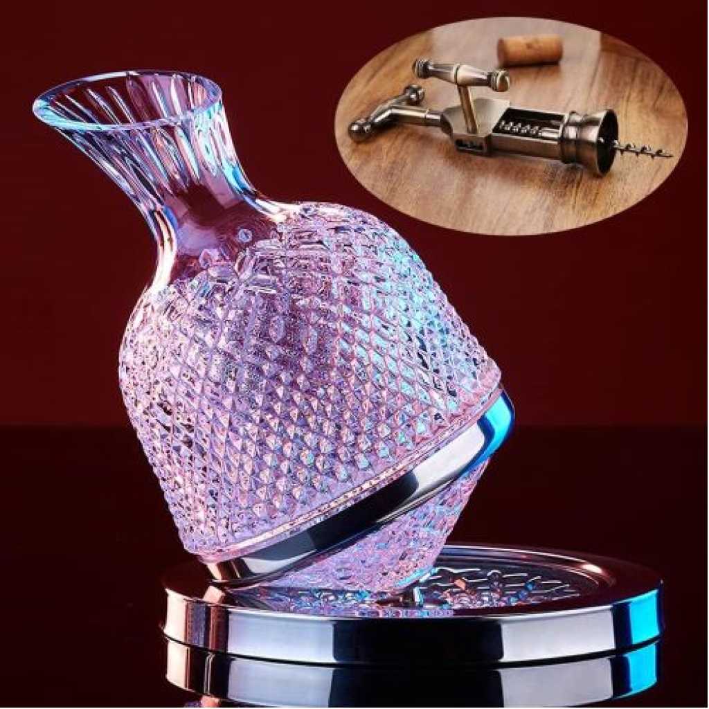 Key Features: 1.[360°ROTATING DECANTER] Wine tasting requires a good atmosphere and a good tool to activate the original taste buds. Our wine decanter set is made of lead-free glass. It is hand cut with diamonds. It has a unique shape and 360° rotation. 2.[THE UNIQUE CARVED BASE DESIGN] which contains magnetic absorption, when you turn the wine glass, you don’t have to concern about the separation of the bottle and the base, it will naturally stop after rotating. This is a good experience, which is 50% percent faster than standard decanters. 3.[COMFORTABLE TO USE]The spout utilizes a cold cut process, the cut is smooth and round without wavy, the 45° percent inclined design can prevent the wine from spilling and dripping, and the bottleneck is non-stray and polished, so that you will not slip your hands when preparing wine. 4.[EXCLUSUVE CUSTOMIZATION]Items you get include a rotating decanter, a base, a custom bottle opener.Using our wine decanter, we have also customized a bottle opener specially for you. The bronze metal texture is used together with the crystal decanter or as a gift, which will bring you a different experience. Perfect gifts for the best man, wedding, celebration, father’s day or housewarming. It is also a good helper with business receptions and family gatherings.