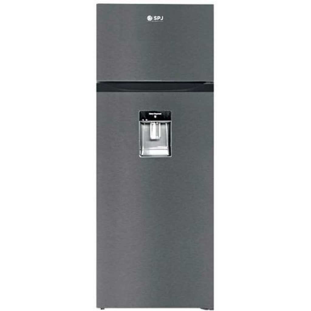 Key Features: SPJ 270 Litres Fridge; Double Door Top Mount Freezer Defrost Refrigerator With Dispenser – Silver. 270 Liters Water dispenser Low Noise Dark Silver Color Environmental Friendly Technology Double door refrigerator LED Lamp Defrost Type: Defrost Fast freeze function Refrigerator Type: Double Door Refrigerator Multi-air flow system Precise temperature control Interior LED light for fridge compartment Fast freeze function Big vegetable crisper with humidity control design Adjustable spill-proof shelf