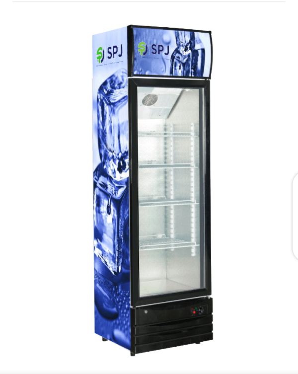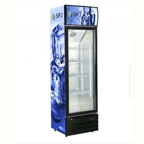 SPJ 400-Litres Single Display Cooler SCCSTS-400C016; Vertical Display Chiller, Single Door Showcase Display Refrigerator The SPJ 400-liter Refrigerator Show Case Is A Single Door Beverage Cooler that has Mechanical Temperature Control With an Adjustable Thermostat. It Features An Auto-Defrost System With an Integrated Arc Door (One Piece). This Beverage Cooler With A Fashionable Appearance Uses Environment-Friendly Technology. The Presence Of Convenience Wheels Makes It Easy To Move From One Place To Another. The SPJ Showcase Refrigerator Also Has a Low Voltage Start And Gives Higher Cooling Efficiency With Internal And Bottom Fans. It Also Features a Hot Air Flow To Avoid Water Condensation On The Door The SPJ Showcase Refrigerator has a low voltage start and gives higher cooling efficiency with internal and bottom fans. It also features a hot air flow to avoid water condensation on the door. Features: Type: Showcase Beverage Chiller Mechanical Temperature Control with adjustable Thermostat Auto Defrost System Integrated Arc Door (One Piece), Fashionable Appearance Inner Light for Bright Showing Effect of Vertical Light to Have Better Lighting Double Layer Door Glass Design Environment-friendly Technology Convenience Wheels Design for Easy Moving With self-evaporate Water Disposal Pan Key Features Capacity (Litre) 400LTR Beverage Display Cooler Yes SPJ Warrant Type: Showcase Beverage Chiller Mechanical Temperature Control With Adjustable Thermostat Auto Defrost System Integrated Arc Door (One Piece), Fashionable Appearance Inner Light For Bright Showing Effect Of Vertical Light To Have A Better Lighting Double Layer Door Glass Design Environment-Friendly Technology Convenience Wheels Design For Easy Moving With Self-Evaporate Water Disposal Pan Low Voltage Start With Internal And Bottom Fans To Provide Higher Cooling Efficiency With Hot Air Flow To Avoid Water Condensation