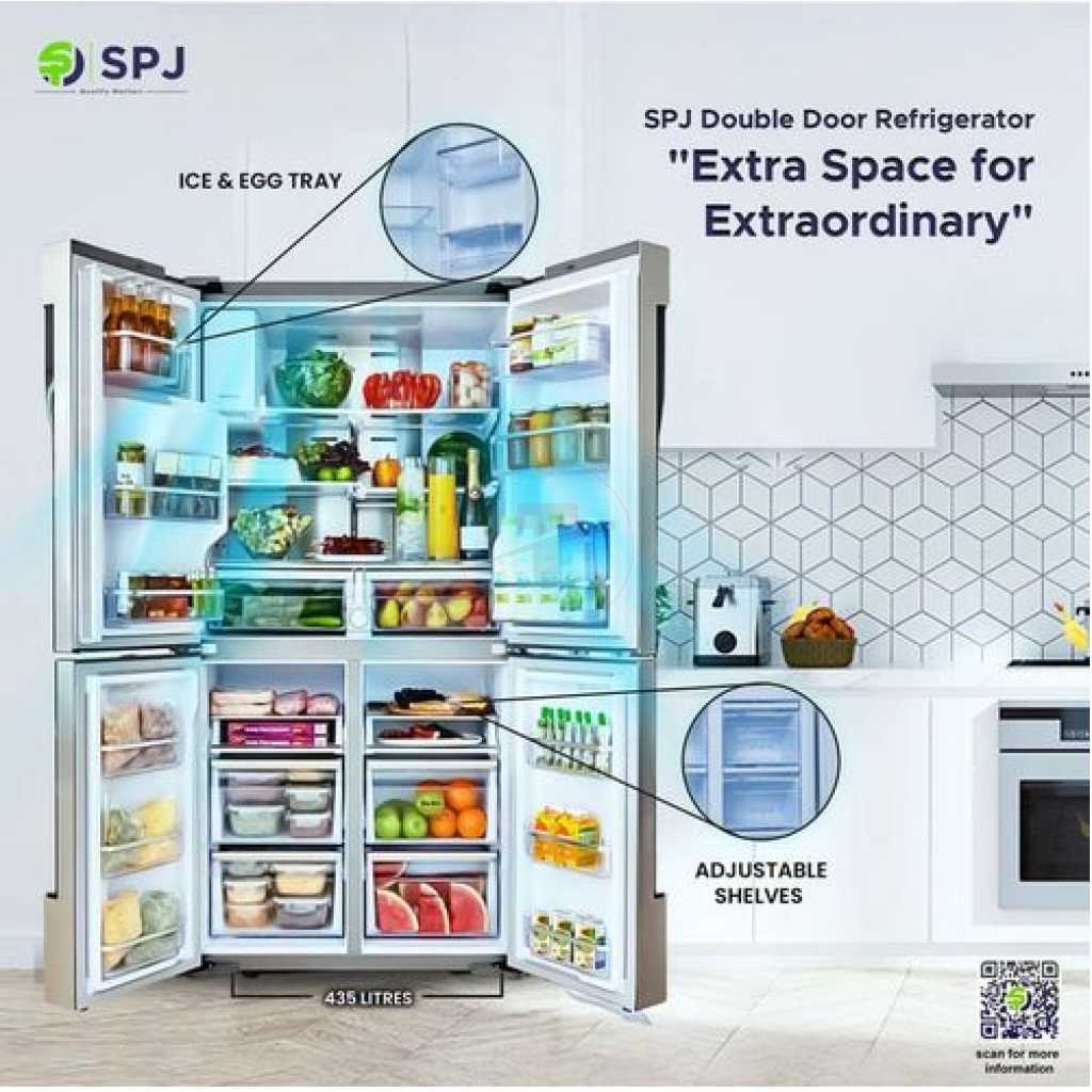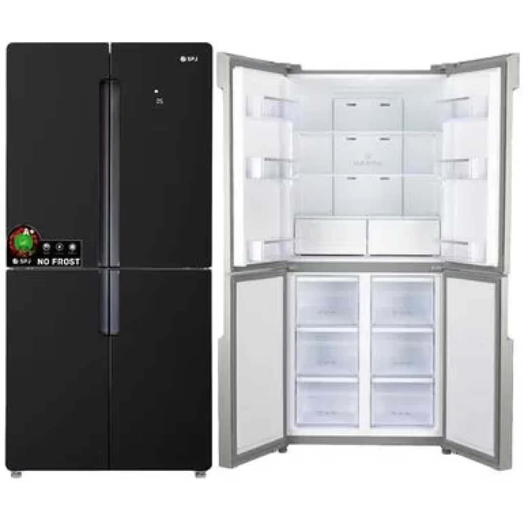 559L 4 Door Refrigerator With Glass Finish & Water Dispenser- Black Keep your perishables fresh and your kitchen classy with the SPJ 559 Pure Flat Stainless French Door Fridge. Driven by an inverter compressor motor, the fridge operates efficiently and quietly. This impressive American style multi door fridge freezer is abundant in space, as well as style and functionality. With its 4 large doors it offers you complete flexibility, no matter the size of your family. Controlled by the integrated LED display with Touch Electronic Control, The Triple Zone Cooling with My Fresh Choice, super cool and super freeze functions and Multi-Function Pantry allow you to tailor the way you chill or freeze your food, depending on your needs. Choose how you chill your food. With a dedicated pantry drawer, this is an ideal area to store all your deli foods. Inverter technology for energy savings and a longer lasting appliance. The refrigerator comes with total no-frost multi-air flow system which will keep your food fresh. The salad crisper will ensure your greens stay fresh for longer. The Eco energy function and holiday function will make sure that your electricity bills stays small. The fridge comes with interior light and the freezer box has a twist-style icemaker.