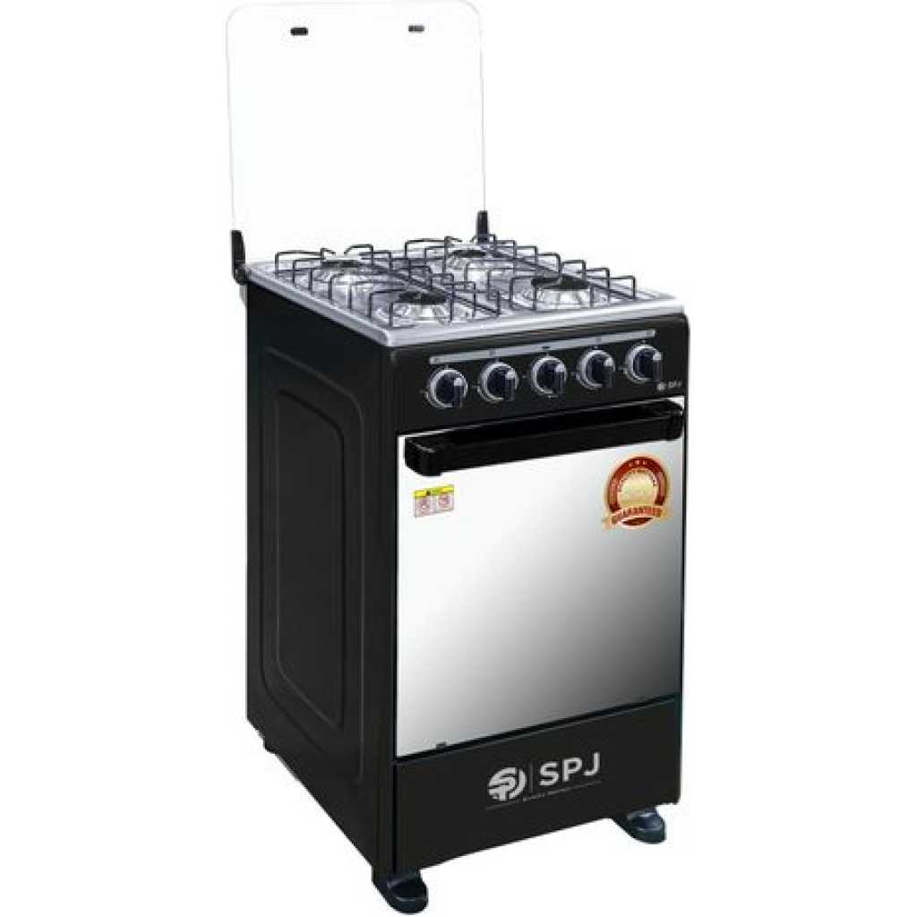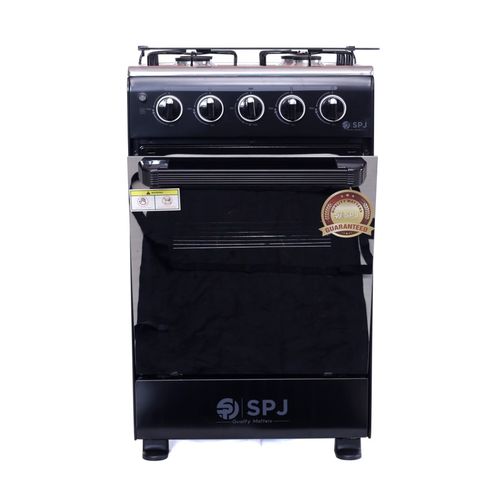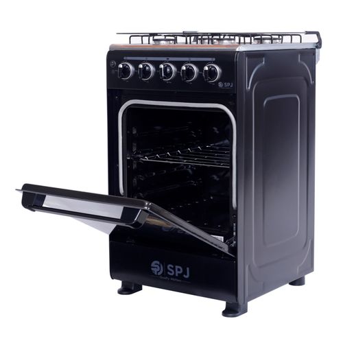 Key Features: SPJ Full Gas Cooker 50x50cm, 4-Gas Burners, Oven and Grill – Black. Manual Ignition 4 gas burners 60L Gas oven Glass Top Double Glass Oven Door Special high-density insulation- for faster & quicker baking Baking Rack Width 50cm x Depth 50cm