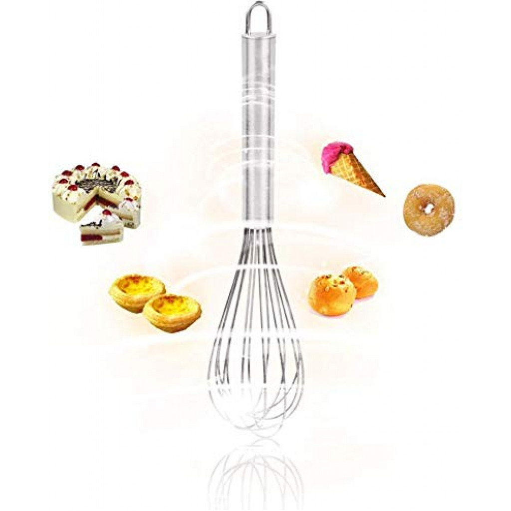 You can select different sizes of egg beater to finish a variety of mixing tasks, as well as good fits for any sized bowls. Using the right size whisk will help prevent it from falling in (or from falling overboard). The smaller whisk works well for combining ingredients when making homemade salad dressings or sauces, while the larger whisks take on eggs, batter, and bigger batches with ease. Good Design with Comfortable Handle. Ergonomically designed for excellent balance and control that you can really feel a difference in your hand. The handle provides a secure hold and helps prevent hand fatigue, even during prolonged whisking sessions. Also, you can easily hang it up, not somewhere messy or unclean. The stainless steel ends allow for easy hanging on any hook in your kitchen. The balloon whisk set makes cooking much easier and more enjoyable. Never Worry About Its Cleaning Working – You can easily clean the remaining sticky material, it can also be conveniently used in the bowl washer. Dishwasher safe! No worry about the cleaning. Perfect Ergonomically Design for Whisk – The shape of whisks is extremely popular features evenly spaced, looped wires at varying lengths for an elongated bulb-like profile.