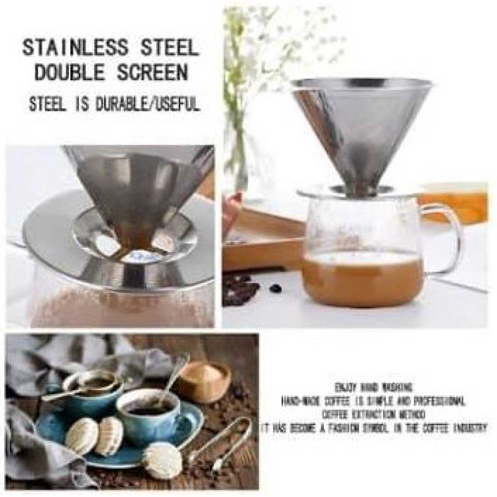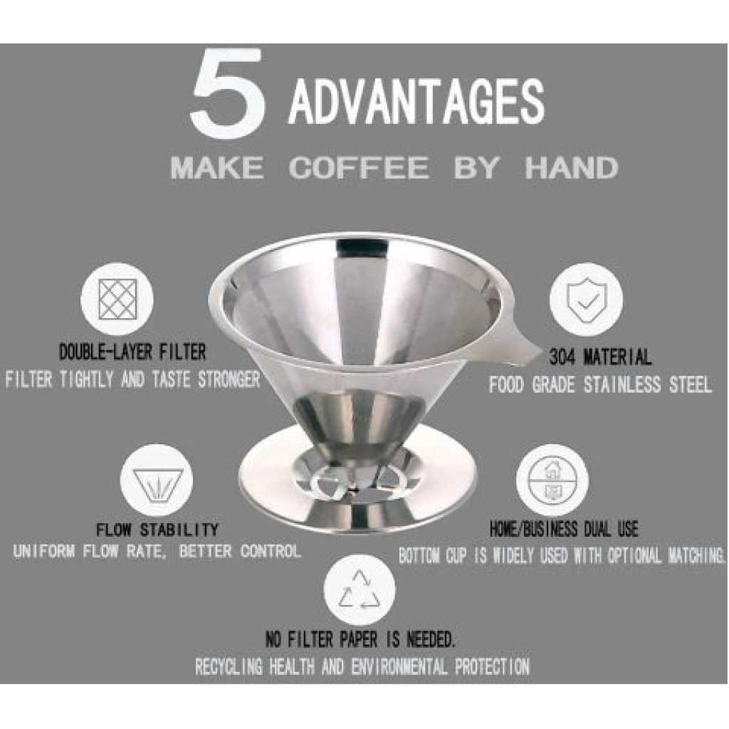 Key Features: An essential tool for crafting a delicious, smooth cup of coffee. This reusable mesh filter pour-over coffee maker is made of fine quality stainless steel making it resistant to corrosion, plus it won’t absorb coffee oils and flavors like paper. This pour-over coffee dripper has good durability, so it won’t break like ceramic or glass. This compact and lightweight coffee dripper fit perfectly on most cups and travel mugs making it portable for camping, traveling, or easy storage at home. It’s great for crafting one cup or two at a time. The cone shape and mesh design will help you get the same great results consistently every time, this dripper is a great addition to your coffee pour-over set. The dripper is the same brewer used by lots of professional baristas. You can get the same results at home, at a fraction of the cost, getting the best cup of coffee every time. Our dripper is not only easy to store, but it is also easy to clean. Simply rinse and dry immediately when finished using.