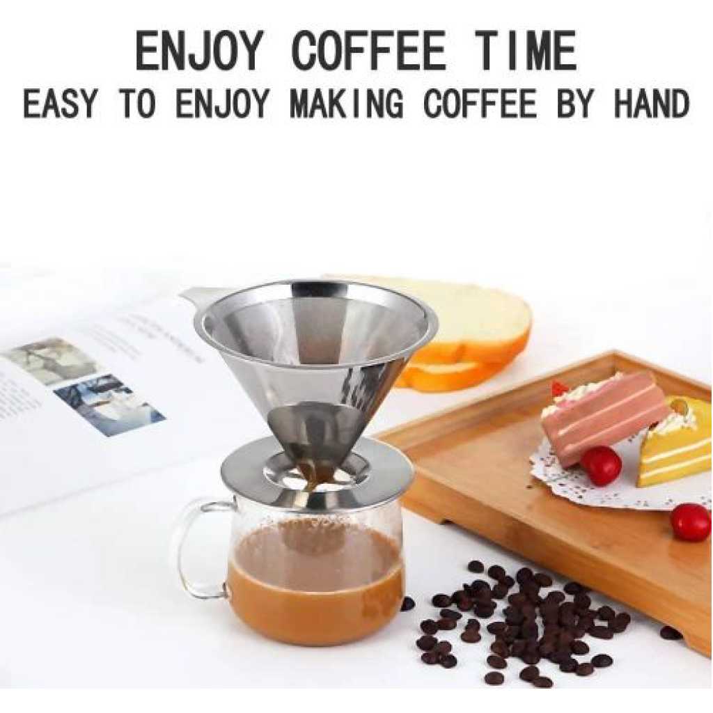 An essential tool for crafting a delicious, smooth cup of coffee. This reusable mesh filter pour-over coffee maker is made of fine quality stainless steel making it resistant to corrosion, plus it won’t absorb coffee oils and flavors like paper. This pour-over coffee dripper has good durability, so it won’t break like ceramic or glass. This compact and lightweight coffee dripper fit perfectly on most cups and travel mugs making it portable for camping, traveling, or easy storage at home. It’s great for crafting one cup or two at a time. The cone shape and mesh design will help you get the same great results consistently every time, this dripper is a great addition to your coffee pour-over set. The dripper is the same brewer used by lots of professional baristas. You can get the same results at home, at a fraction of the cost, getting the best cup of coffee every time. Our dripper is not only easy to store, but it is also easy to clean. Simply rinse and dry immediately when finished using.