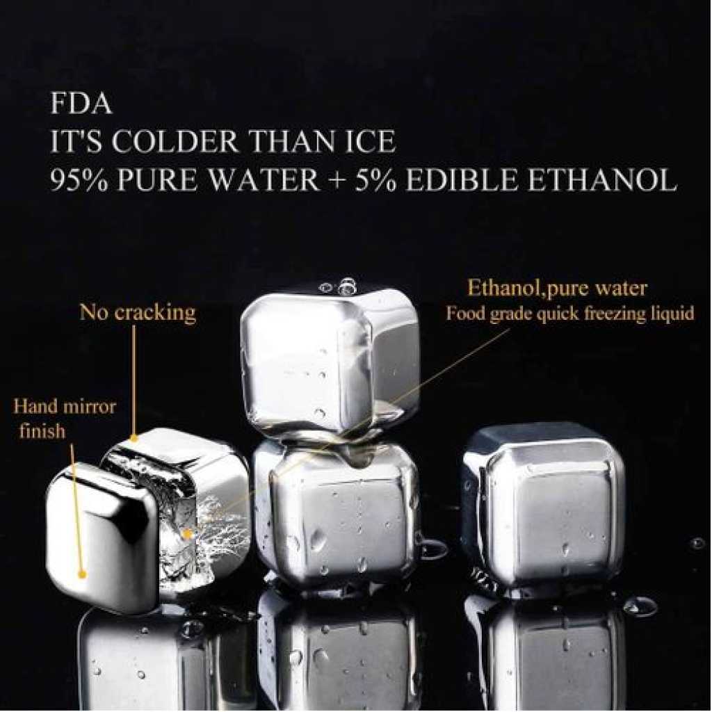 Key Features: Stainless Steel Ice Cubes Chilling Cube Whiskey Stones Durable Reusable Chilling Stones for Whiskey Wine, Whiskey Stones for Kitchen Bar(Pack of 8) With A Tong- Silver COOL DOWN FAST: Before putting the stainless steel ice tubes in the fridge to freeze, just slightly dampen them. Usually, 1-2 hours frozen time is ok, for better enjoyment 3 to 4 hours is suggested. NEVER DILUTE: Can be used for cooling Whiskey, Beer, and juice. Since the reusable ice cubes’ stainless steel doesn’t melt or rust, you don’t have to worry about diluting, or affecting the flavor of the whiskey Premium Quality: Made of high-quality food-grade stainless steel 304 which from a smooth design, the stainless steel ice cube set, does not scratch glass, hit your teeth, and will not be swallowed, they are durable and dishwasher safe. EASY CLEANING AND STORAGE: 6 reusable stainless steel ice cubes are filled with food-grade liquid and a freezer storage tray is included. Plastic storage tray to keep your whiskey stones clean and to organize them during freezing, just simply water wash after use, very convenient. ELEGANT GIFT FOR FAMILIES AND FRIENDS: The stainless steel ice cube set is stylish and luxurious, making it an elegant gift for your family or your friends. Can be used at home, office, or parties for enjoying a relaxing time. Also used for sprains on the body, bringing down a fever, or reducing swelling.