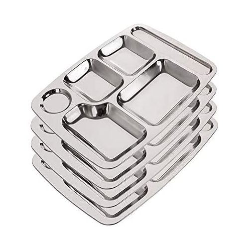 Key Features: Stainless Steel Rectangle 6-In-1 Component Dinner Plate Tray For Lunch. Made of high-quality material, more durable. 100% Brand new and high quality High-quality stable structure, healthy and environmentally friendly. Lightweight and durable material for durable and practical use EVERY DAY USE: The four sections are great for children and adults for picnics, camping, or dinner. HIGH QUALITY: 100% food grade 304stainless steel. BPA free. Toxin-free. Dishwasher safe. thickness:1.0MM EASY TO CARRY AND STORE: These sectioned round plates can be conveniently stored and packed. Many customers replace their lunch plates in the cafeteria or at work and use the compartments for portion control. ONLY BUY ONCE: You probably prefer plates that will last for life. Unlike cheaper versions, these plates are heavy-duty and will not bend or break.