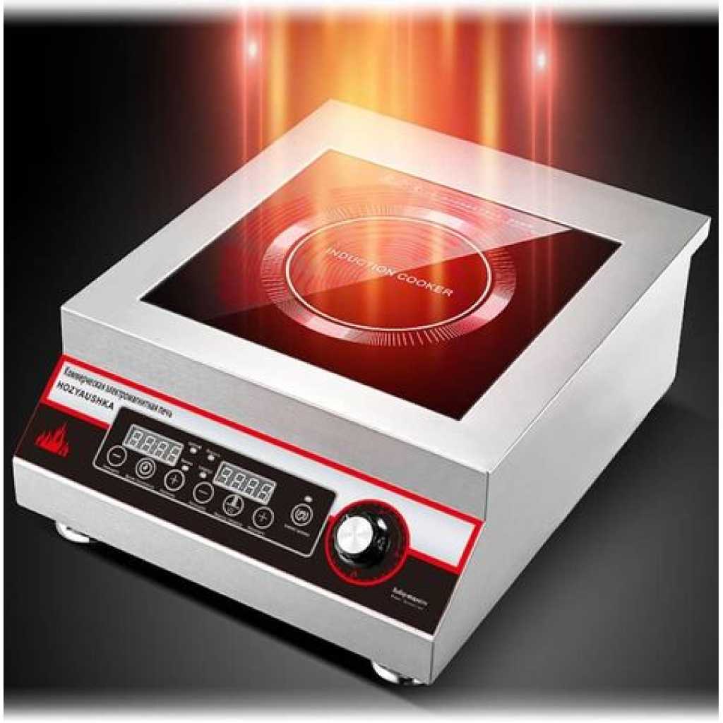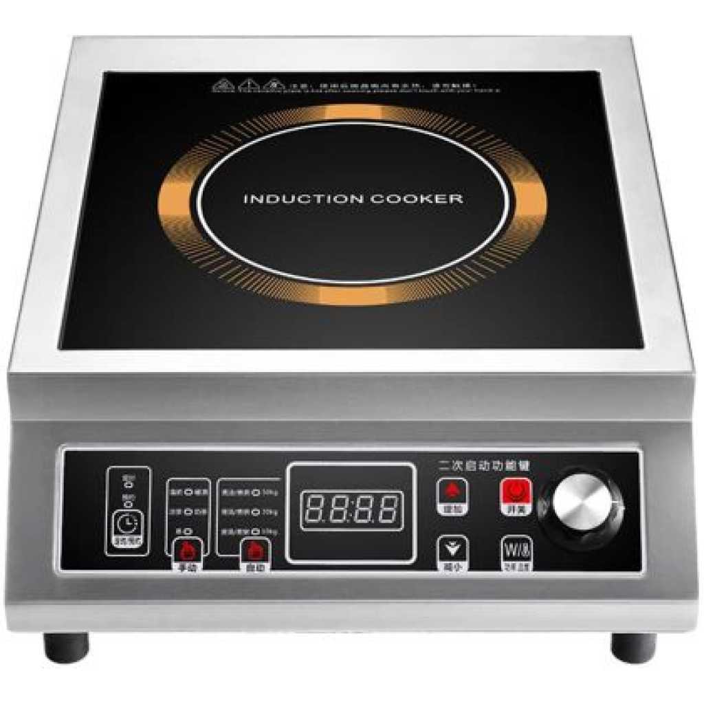 Stainless Steel Single Burner Commercial Induction Cooker Electric Ceramic Glass Cooktop Non Stick Surface High Power Fast Cook For Hotel Canteen Restaurant Use