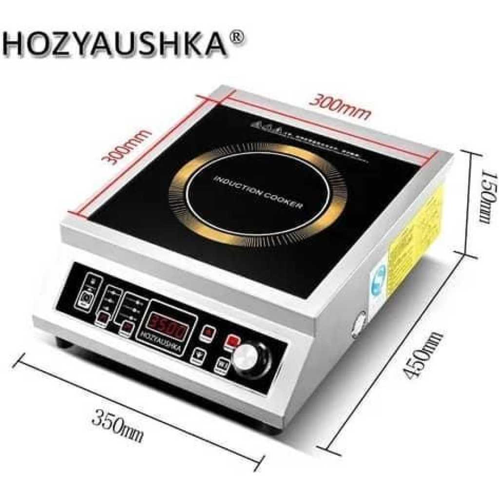Key Features: Great power 3500W for fast cook for most type of foods. The panel can display temperature and power Can preset cooking time, auto-cook and close when times off Can preset delay cook, for foods need long time prepare scch as porridge and soup Use knob to adjust output power for different foods IH heating technology 360° coverd heat fast cook with less energy cost Two fans at the bottom fast heat dissipation