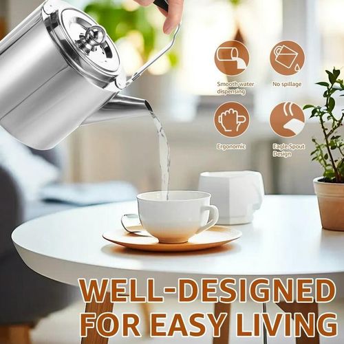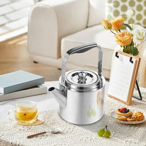 Key Features: Premium Material: Crafted from quality stainless steel , this teapot offers exceptional durability . Its versatile design allows use on induction cookers , gas stoves , electric heaters , ceramic hobs , and even charcoal stoves , meeting all your brewing needs Functional Spout Design: The innovative eagle style spout combines ergonomic comfort with practical functionality . Its unique shape ensures smooth pouring without drips while providing dust protection , bringing convenience to your daily tea time Generous Capacity: With a 1 .8L capacity , this teapot comfortably serves 3 to 6 people . Perfect for both personal use and entertaining guests , it meets all your serving requirements in one brew Removable Tea Infuser: The detachable infuser features a fine mesh filter that effectively strains tea leaves while allowing optimal water circulation for full flavor extraction Upgraded User Experience: The ergonomic handle provides a secure , non slip grip with heat resistant properties for comfortable handling . The energy concentrating base ensures fast , even heating to boil water quickly and save your valuable time