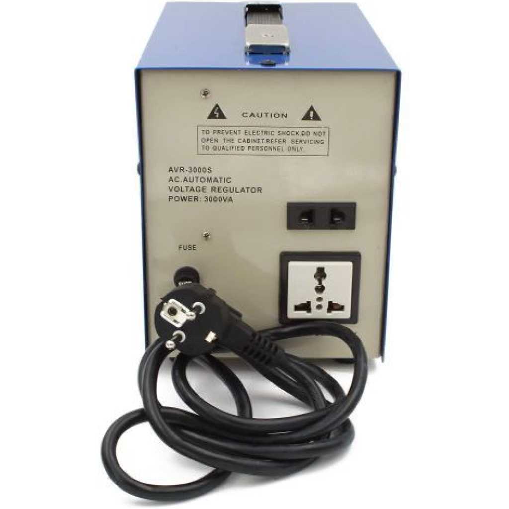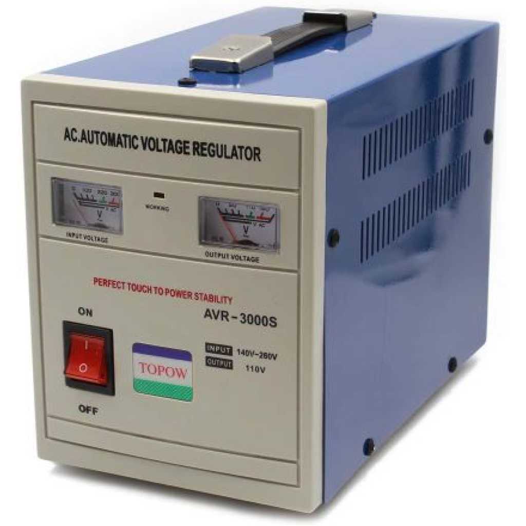 Key Features: High accuracy household voltage stabilizer and transformer Designed to transform 220 volts into 110 volts up to 3000 watts Safe for a wide range of electrical equipment including home appliances and computer equipment Ventilated design for continuous use and applicable for areas with large fluctuations of electric network voltages Input voltage: AC120V-250V 50HZ/60HZ with low or over-voltage protection Output voltage rated at 110V +-8% with manufacturer recommendation to purchase a transformer that is 25% higher than the wattage needed