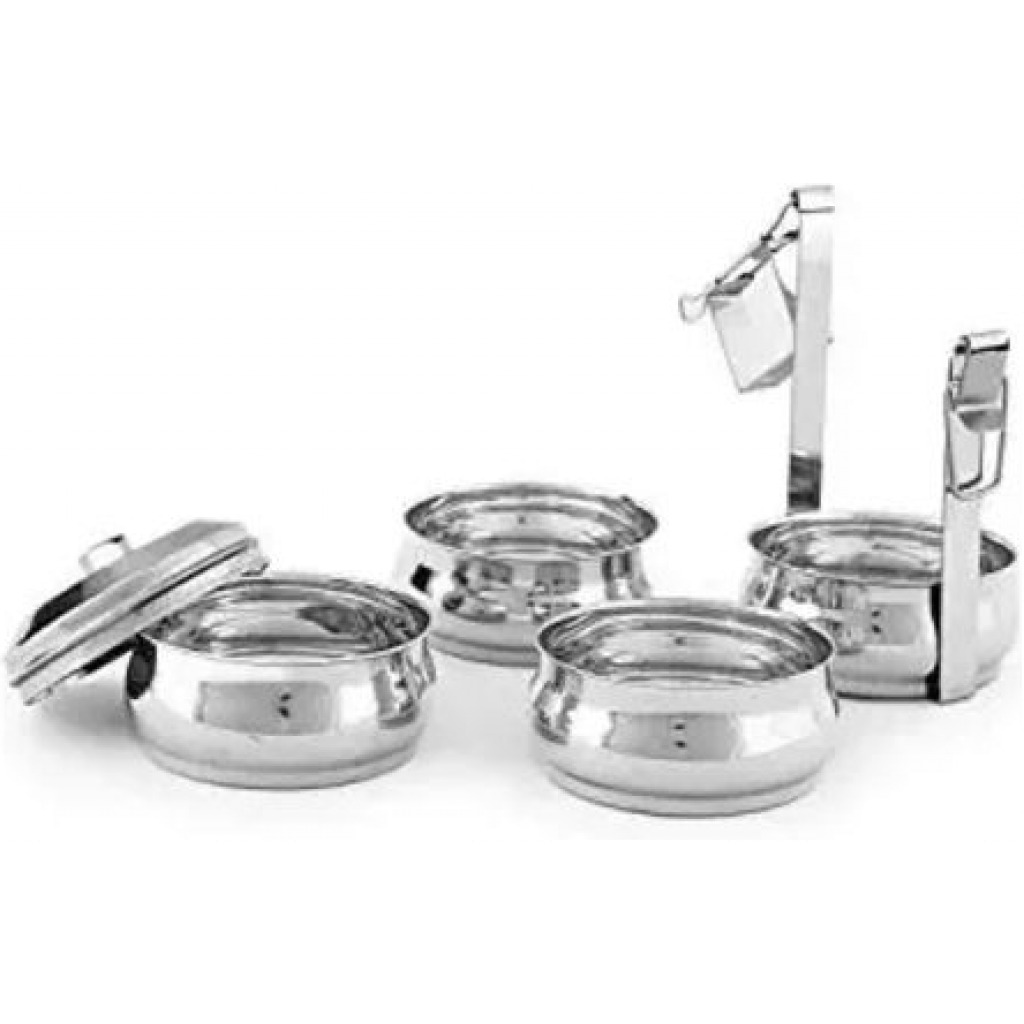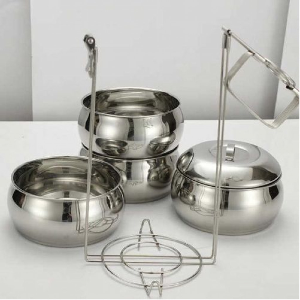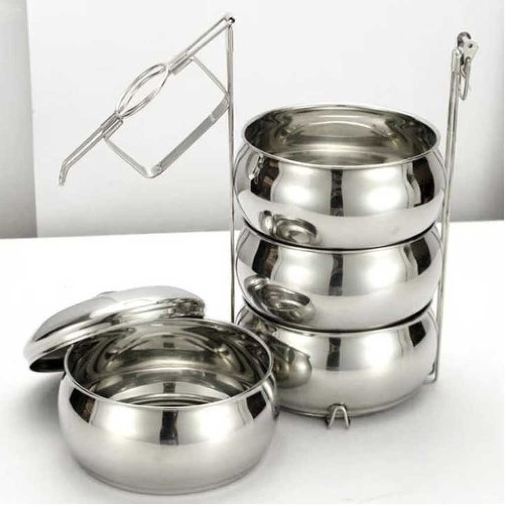Stainless Steel Air Tight 4 Layers Food Container Carrier Lunch Box Carry home food to office with much ease:nothing can beat the pleasure of having home-cooked food in office. If you too, like to relish home food in office or prefer to carry your own food to outdoor, then you must purchase this stainless steel four container tiffin set from royal sapphire. Enjoy carrying different variety of dishes to office now.Sturdy and durable tiffin box for you:the royal sapphire legend 4 container tiffin is made of sturdy stainless steel that makes it durable and long lasting. The outer steel body renders a very classy and elegant look to it. Besides, stainless steel material prevents it from rusting and damage from daily use.Questions You May Care About This lunch box is made of stainless steel, durable and rustproof The food container comes with carrying bag, which is very convenient to carry Each container with leak proof No matter where you always can eat your own delicious and healthy fruit snack or other food. Meet the ultimate versatile lunchbox, Your best friend in kitchen or outside. Thanks to their unmatched quality Offers the stainless steel food storage container comes with the top notch quality Durable and beautiful shoulder strap bag fashionable to carry and handled. Keeping cool or hot your food and beverages for hours while traveling. Easy to carry with adjustable shoulder strap with buckle for carrying comfort. Versatile bag excellent for work lunches, picnic, travel, BBQs,camping,beach etc Small front pockets for your keys, phone, wallet and other essentials. Hidden handles, more beautiful Food grade silicone seals, prevent leaks Layers of buckle, more safe and strong. Product parameter Product Name: Stainless Steel Lunch Box Product layers: 4 layers Multiple configurations: simple package/sealed leakproof Applicable places: school/company/going out Product material: 304 stainless steel; 201 stainless steel; sealing ring: silica gel