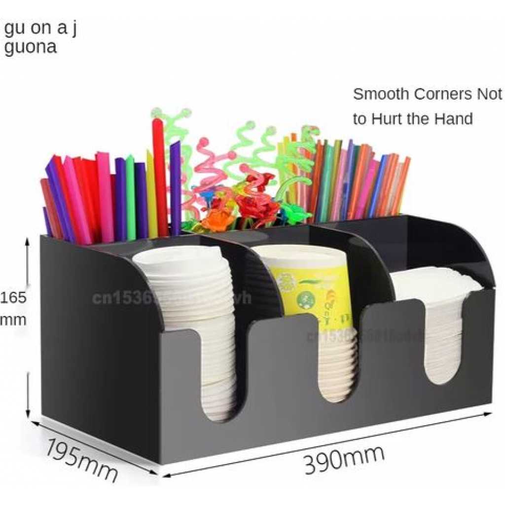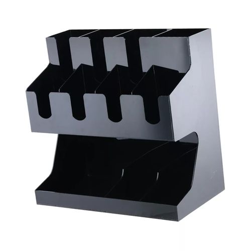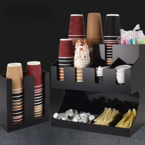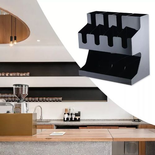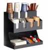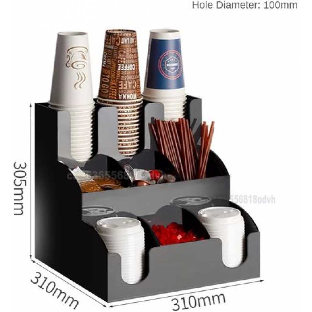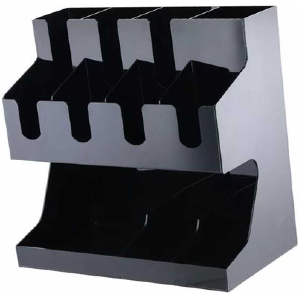 Key Features: Storage Rack Coffee Tea Bags Shop Cup Holder Grid Storage Organizer – Black. ULTIMATE COFFEE TEA CONDIMENT ORGANIZER: Complete condiment and beverage accessory solution organizes any size office breakroom or beverage space where employees gather to eat and drink at work. MULTI-SLOT MAKES IT EASY TO ORGANIZE: Three-tier vertical organizer features 5 compartments for coffee cups, tea cups, cups for water, coffee lids, sugar packets, tea bags, creamers, stirrers, or utensils. PERFECT FOR AT HOME, OFFICE, OR HOSPITALITY: Makes coffee and tea service areas easy to organize in hotel lobbies, motel breakfast service areas, at home on your kitchen counter, or at workspace saver organizer solution keeps condiments organized. VERSATILE ORGANIZER SPACESAVER: multi-compartment organizer helps to keep loose condiments, ketchup and mustard packets, paper clips, thumb tacks, rubber bands, and anything that needs organizing in their place until you’re ready to use. LIGHTWEIGHT AND DURABLE: durable constructions are food safe and easy to situate in the perfect spot on the work counter, kitchen counter, tabletop, or desk – can withstand day-to-day use of office employees, warehouse staff, hotel patrons, and more. EASY CARRY AND NON-SLIP: It’s easy to move this lightweight acrylic vertical organizer so that it’s close to coffee pots, hot water coolers, or anywhere you need this organizer to sit – use for traditional condiment organizer or to organize items as needed. PERFECT FOR DORMS AND COLLEGE: Students and teachers need organizers too – use in dorm rooms, and common areas where coffee, tea, hot chocolate, and hot water are served – keep near snacks and food. KITCHEN COUNTERTOP ORGANIZER: All kitchens need organizing and this is a sure way to organize those coffee pods – keep them on the counter or hide them away in kitchen cabinets if you’ve got the space and like things tucked away behind cabinet doors. EASY TO CLEAN: Keeping organizers is easy – simply wipe them clean with hot water.