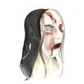 Strašidelná čarodějnice s dlouhými vlasy Halloween maskování zombie realistická maškaráda