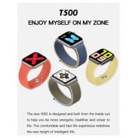 Key Features: T500 Smart Watch – Blue. Full Touch Screen Bluetooth Watch IP67 water and dust resistant Blood pressure measurement (tonometer) Blood oxygen level Heart rate sensor Call / SMS / social notifications Music player control Pedometer, Calorie Counter, Sleep Monitor Alarm clock, Calculator Detachable strap