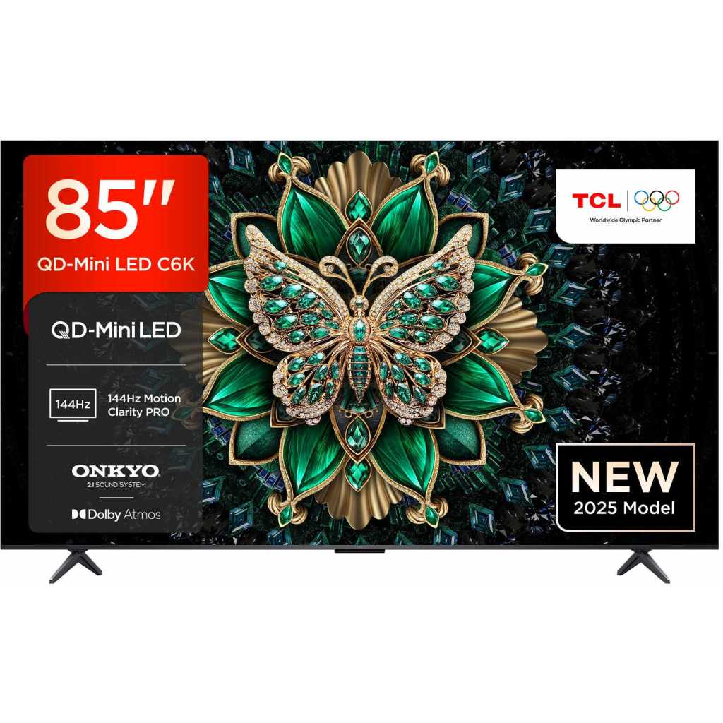 TCL 85 Inch QD-MiniLED QLED UHD 4K Smart Google TV, 85C6KS (2025 Model), Ultra Slim Design, High HDR, ONKYO 2.1 Hi-Fi System, AiPQ Processor, HDMI, USB, LAN, Optical, Satellite, CI Slot, Youtube, Netf